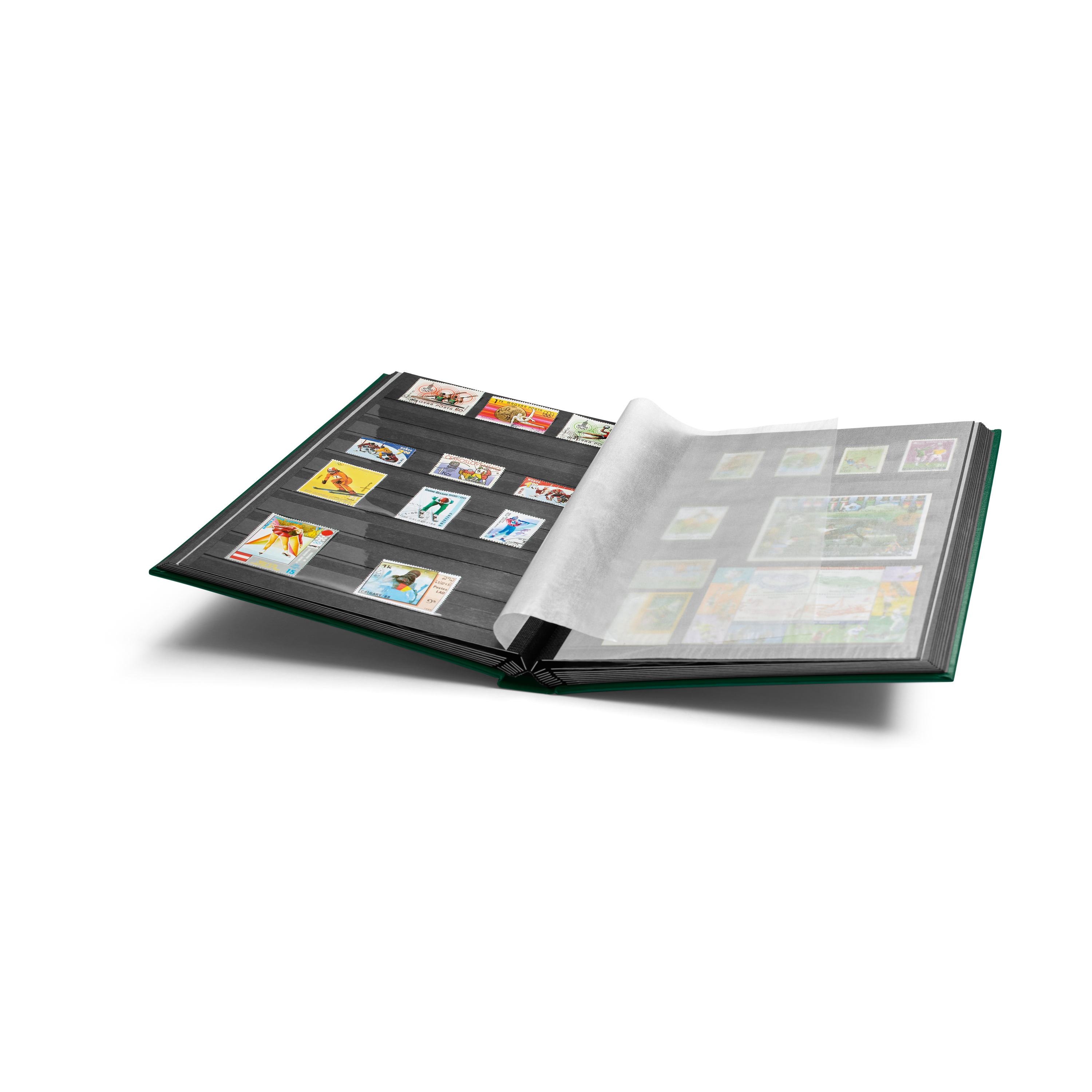 Comfort stockbook, DIN A4, 32 black pages, padded cover, green