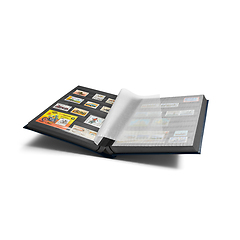COMFORT A4 stockbook with 64 black pages, padded leatherette cover. The book features 9 clear glassine strips per page, double interleaves with double hinge binding.