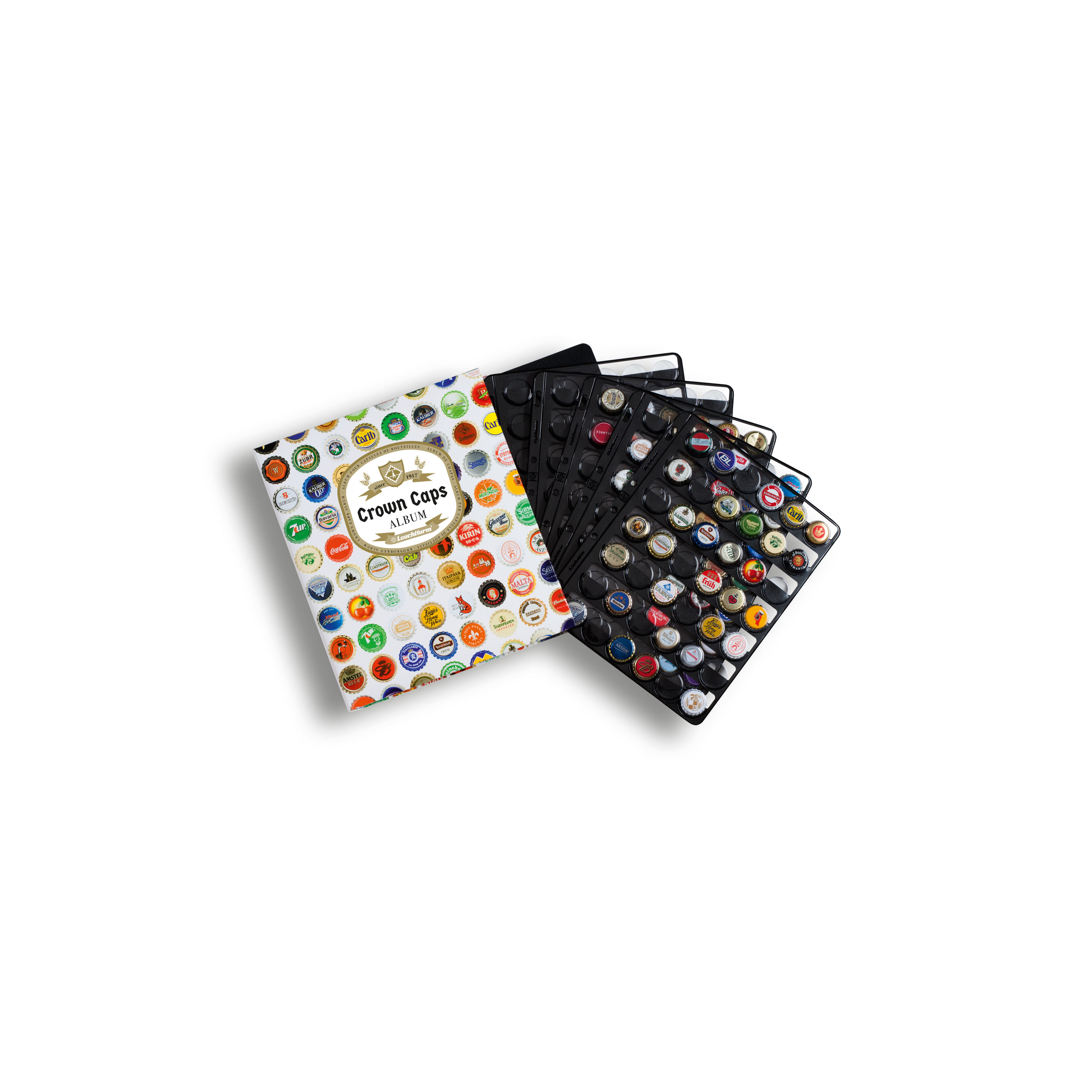The album can be supplemented with additional pockets sheets (total capacity: 9 sheets = 378 bottle caps).