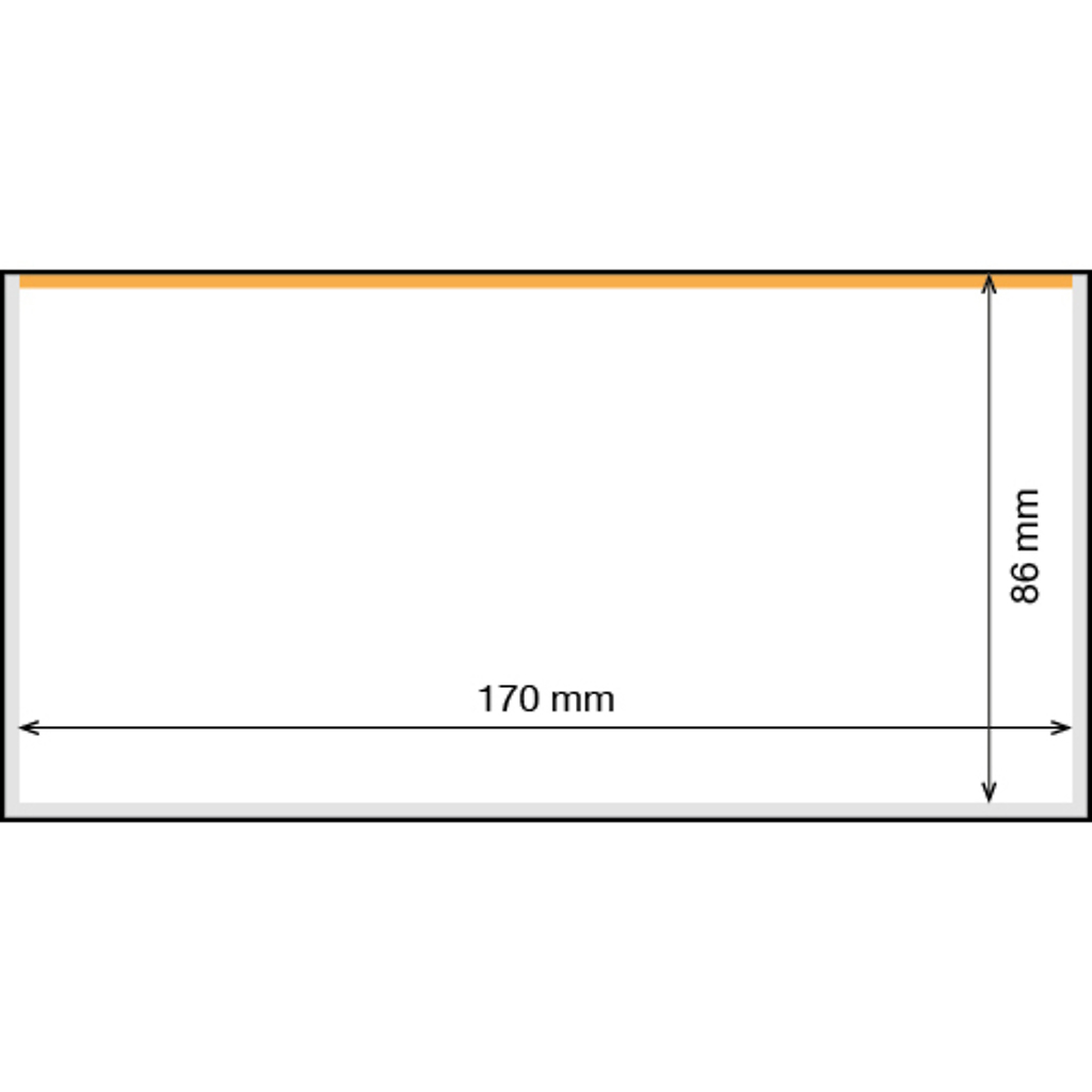 For storing banknotes up to 170 x 86 mm (8 x 4 4 / 5 " /W/H). The sleeves are sealed on 3 sides (bottom, left and right), open at the top. The banknotes can be easily inserted and removed. Banknotes are not creased when inserting. The clear protective sheet ensures a clear view from both sides of the banknotes. Material: durable rigid PVC.