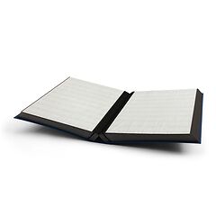 BASIC stockbook A4* with 64 black sheets and un-padded cover. Incl. 9 clear strips per page, interleaves and double hinge binding.
