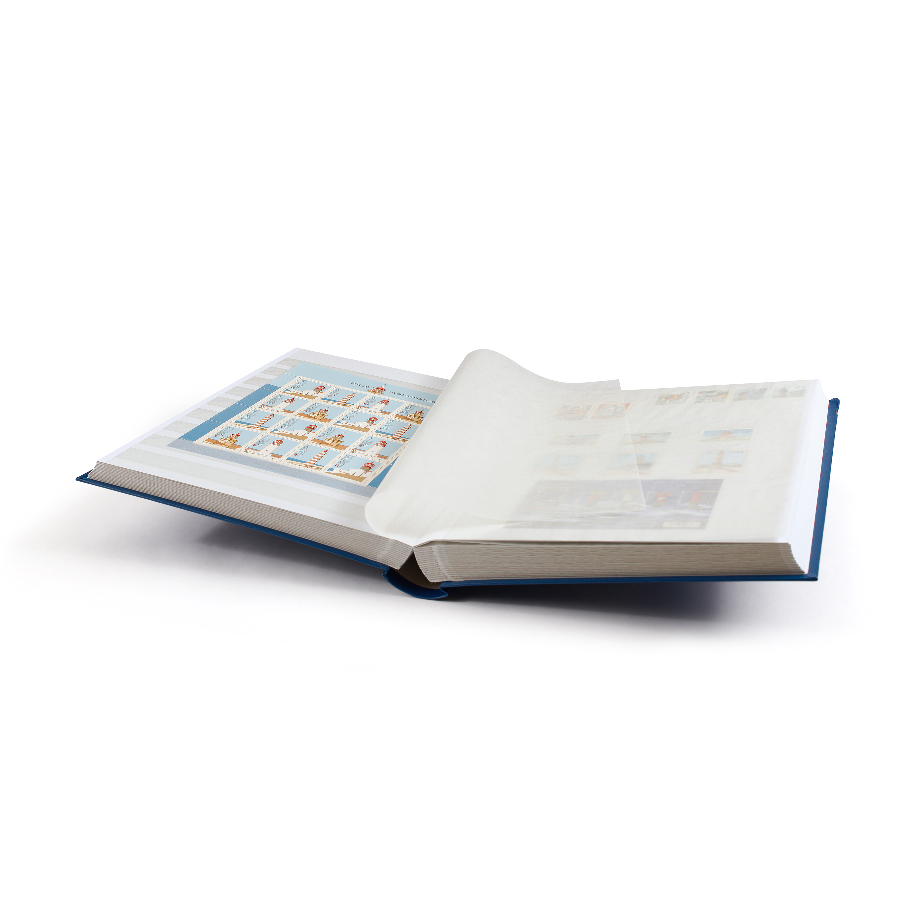 BASIC stockbook A4* with 64 white pages and un-padded cover. Interleaving with 9 glassine strips per page and double hinge binding. Available in 4 colours.