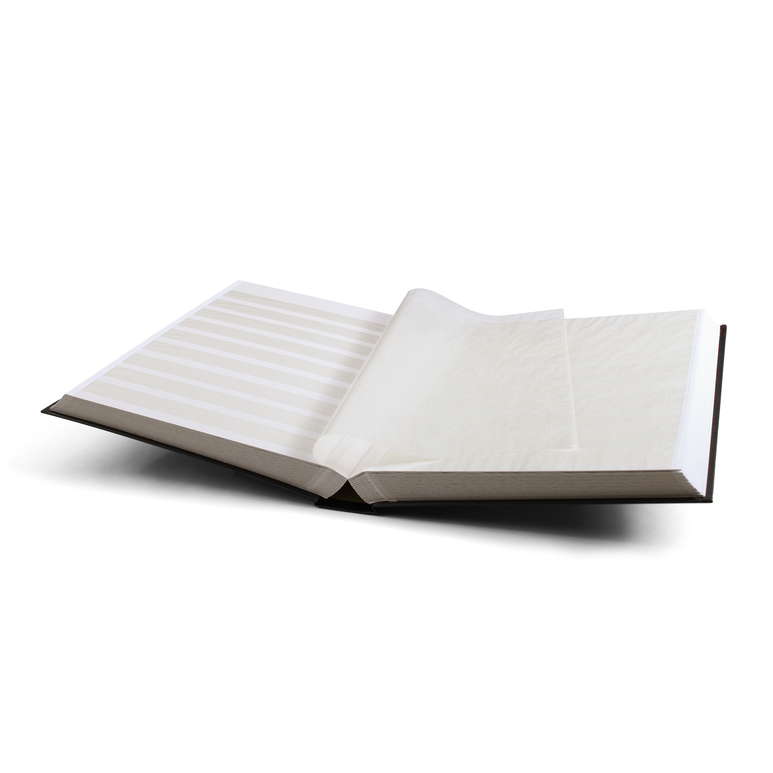 BASIC stockbook A4* with 64 white pages and un-padded cover. Interleaving with 9 glassine strips per page and rigid binding. Available in 4 colours.
