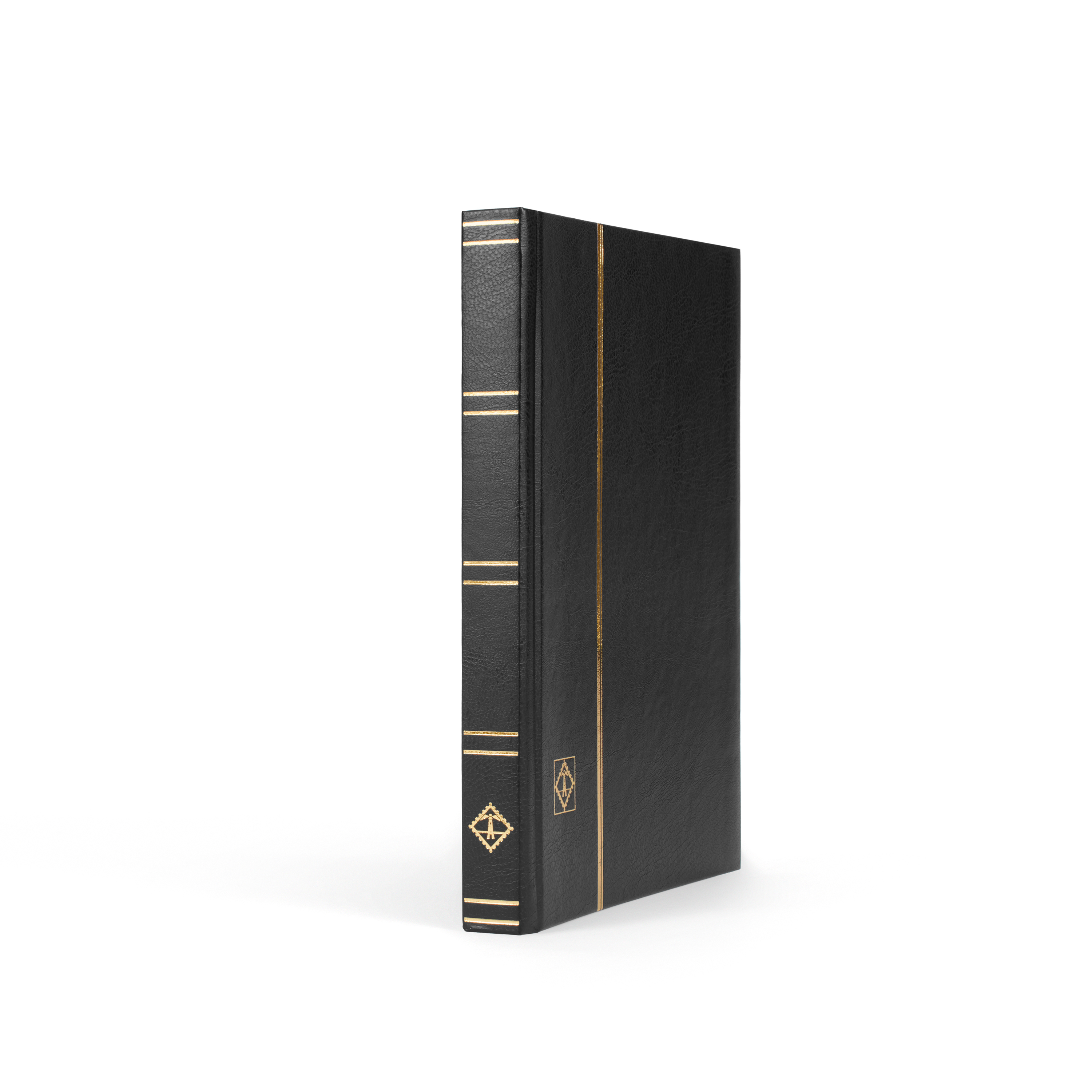 BASIC stockbook A5* with 32 black sheets and un-padded cover. Incl. 6 clear strips per page, interleaves and double hinge binding.