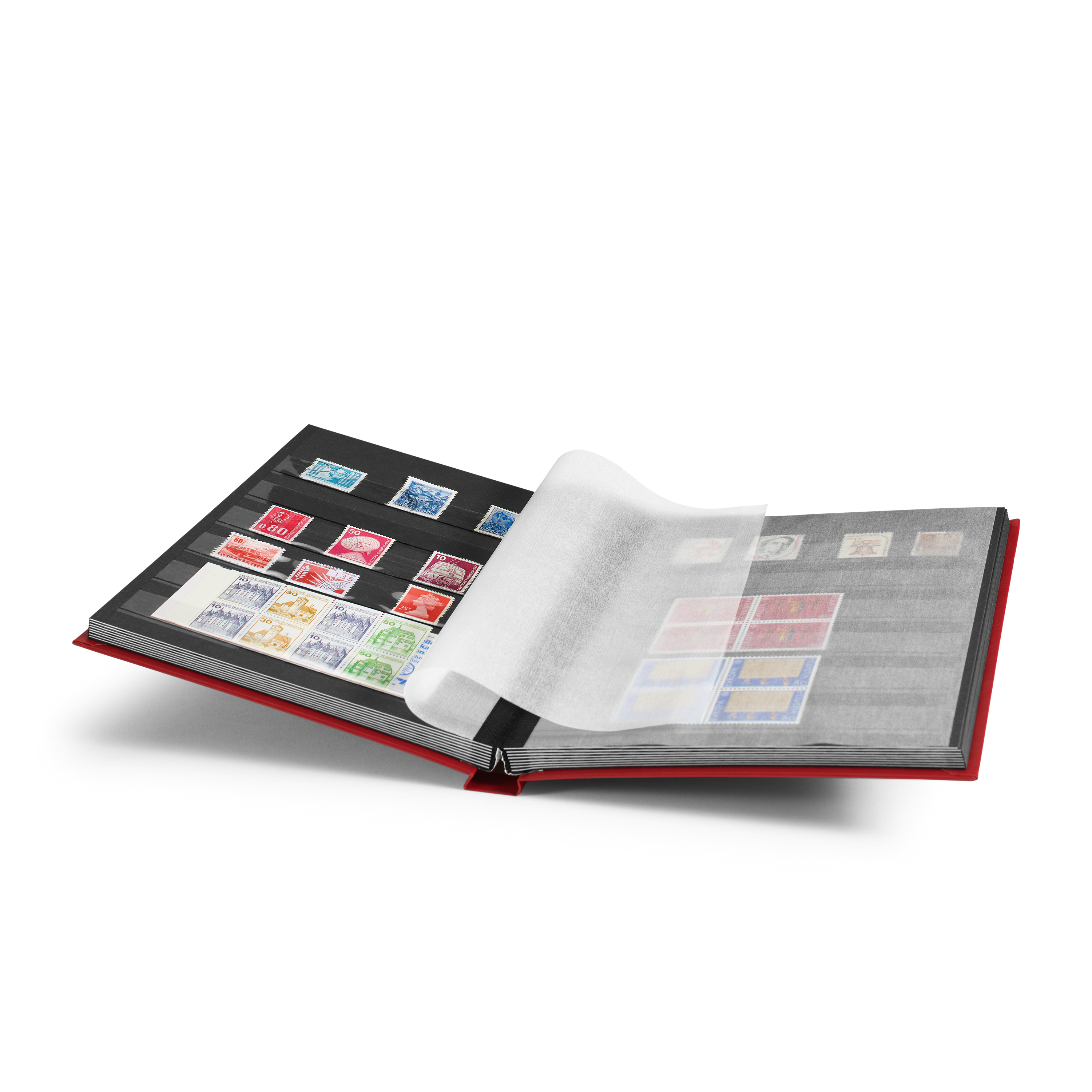 Basic stockbook, DIN A5, 32 black pages, unpadded cover, red
