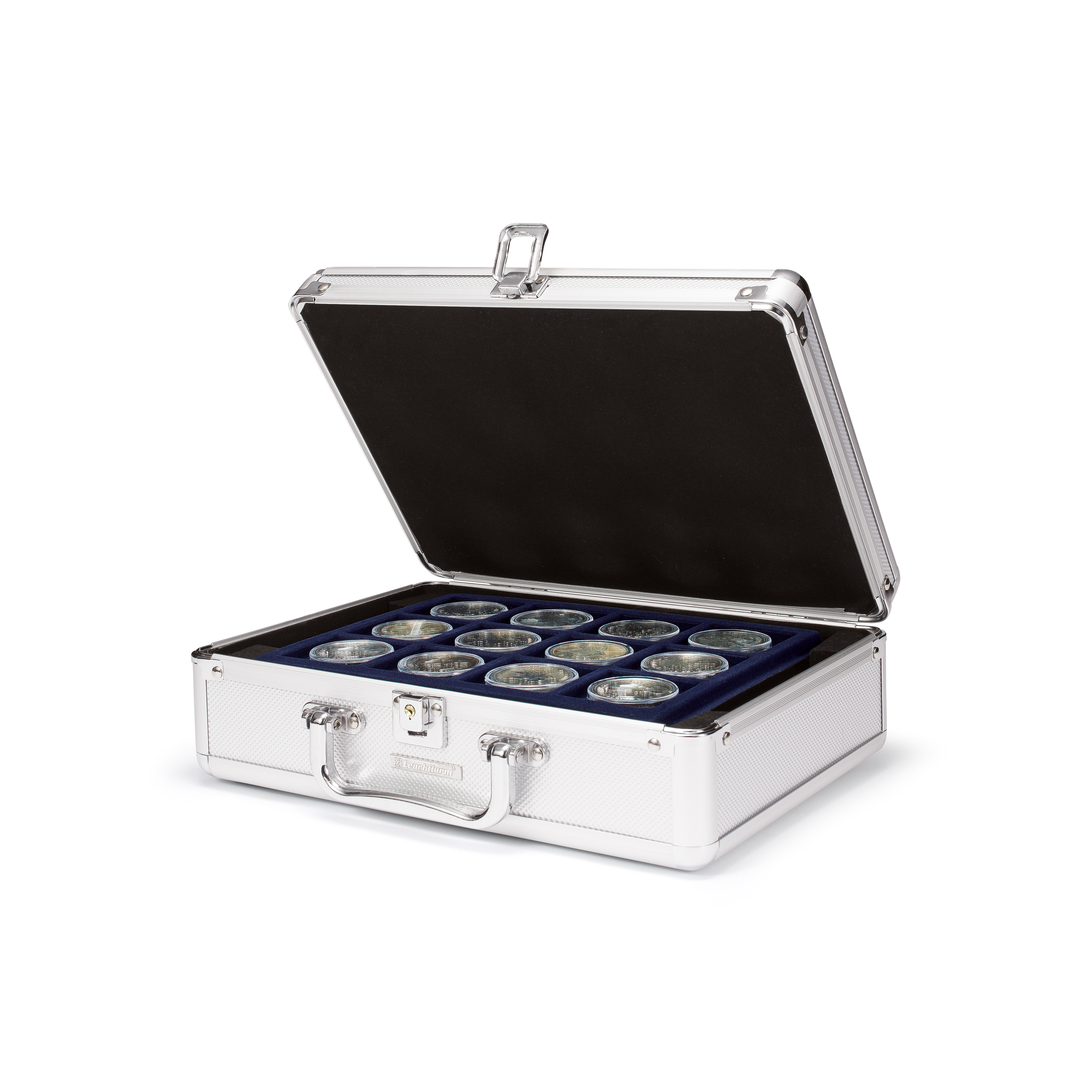 The Cargo S6 small coin case offers a stylish and secure storage solution for your coin collection. It is completely lined with elegant, dark blue velour, which not only gives it an attractive appearance, but also provides optimum protection for your coins. The padded case lid provides additional protection, while the lockable closure with two keys ensures security. There are six trays inside the case, each offering space for 20 coins with a diameter of up to 41 mm. The Cargo S6 combines functionality and elegance and is the perfect choice for discerning coin collectors.