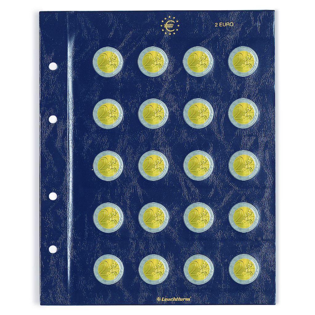 We recommend the blue Vista coin sheets for storing coins. This album is equipped with a 4-ring perforation and offers space for a total of 20 European 2-euro coins.