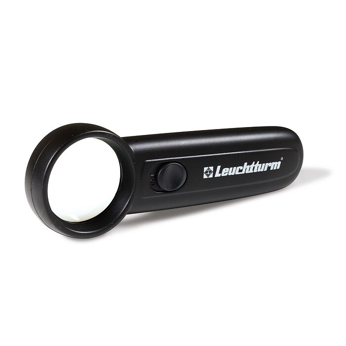 Compact and handy magnifier with 6 x magnification and 35 mm (1 1 / 3 ") diameter lens. Incl. three batteries (AAA), LED technology. Aspheric lens made of acrylic glass which makes it perfect for travelling as well.