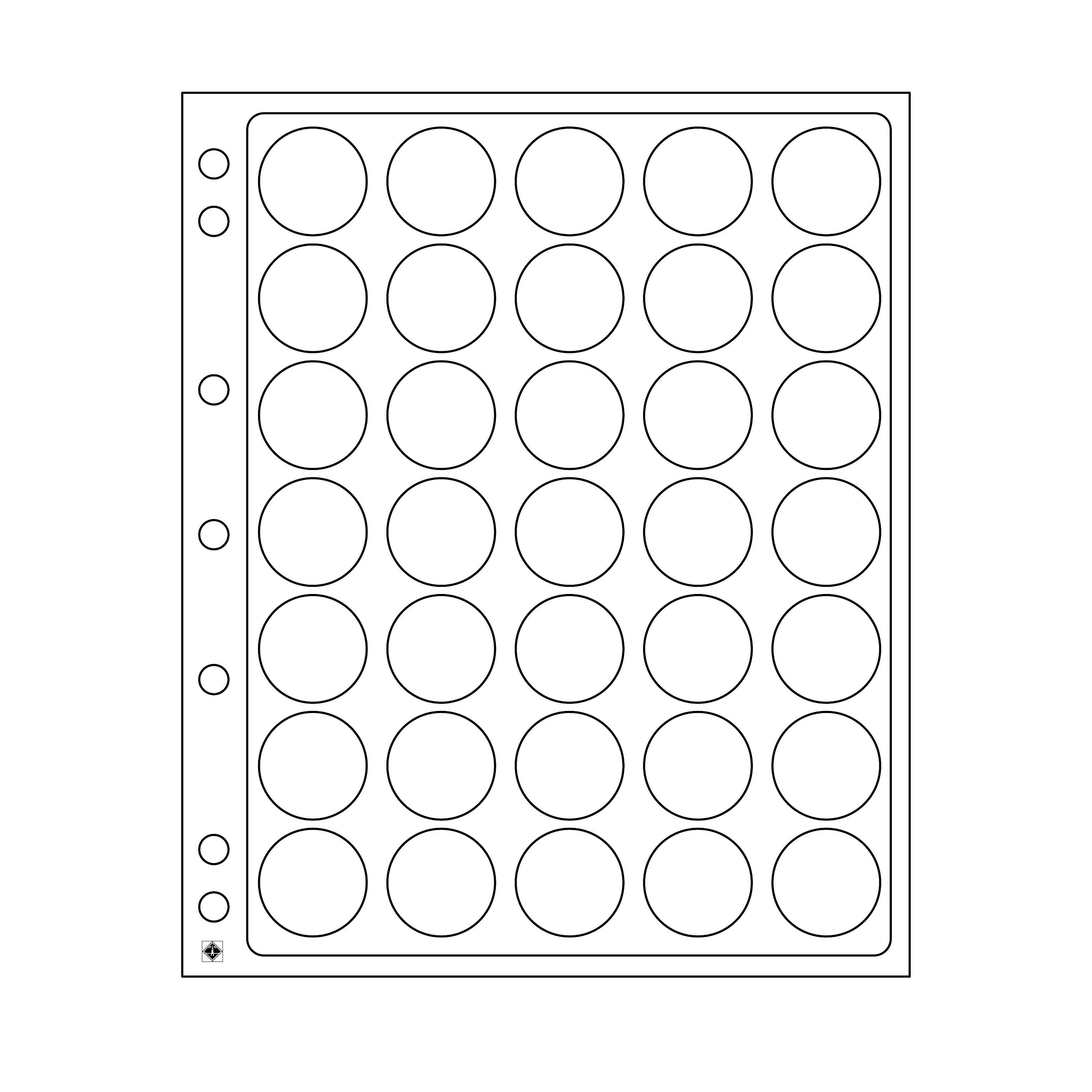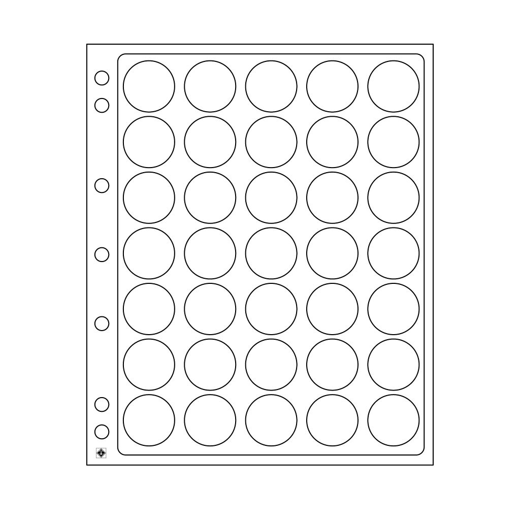 ENCAP sleeves offer an efficient system for storing encapsulated coins. Made of high-quality, dimensionally stable clear plastic (polyester), they are available for all standard round coin capsules, quadrum coin capsules and US coin capsules. The outer format is 282 x 235 mm. The sleeves fit easily into all Grande binders or standard office folders with 4 rings. You receive 2 ENCAP sleeves per pack. Panel made of high-quality, very solid clear synthetic material to store 35 5 euro Austria or 1 euro coins in CAPS28-30.
