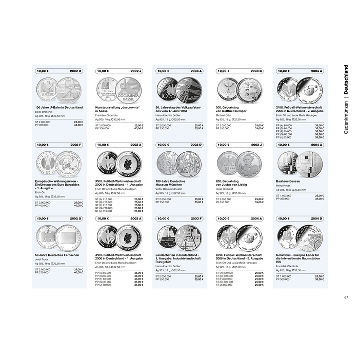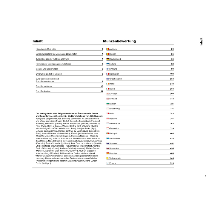 This catalogue offers a detailed presentation of all banknotes and official coin sets since the introduction of the euro in the various countries. In addition, you will find a comprehensive summary of all European 2-euro commemorative coins as well as a detailed catalogue of euro banknotes.