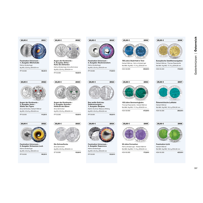 Always be up to date, as this catalogue is updated annually on 1 December to include all coins known up to the editorial deadline and to adjust the mintage figures of previous editions.
