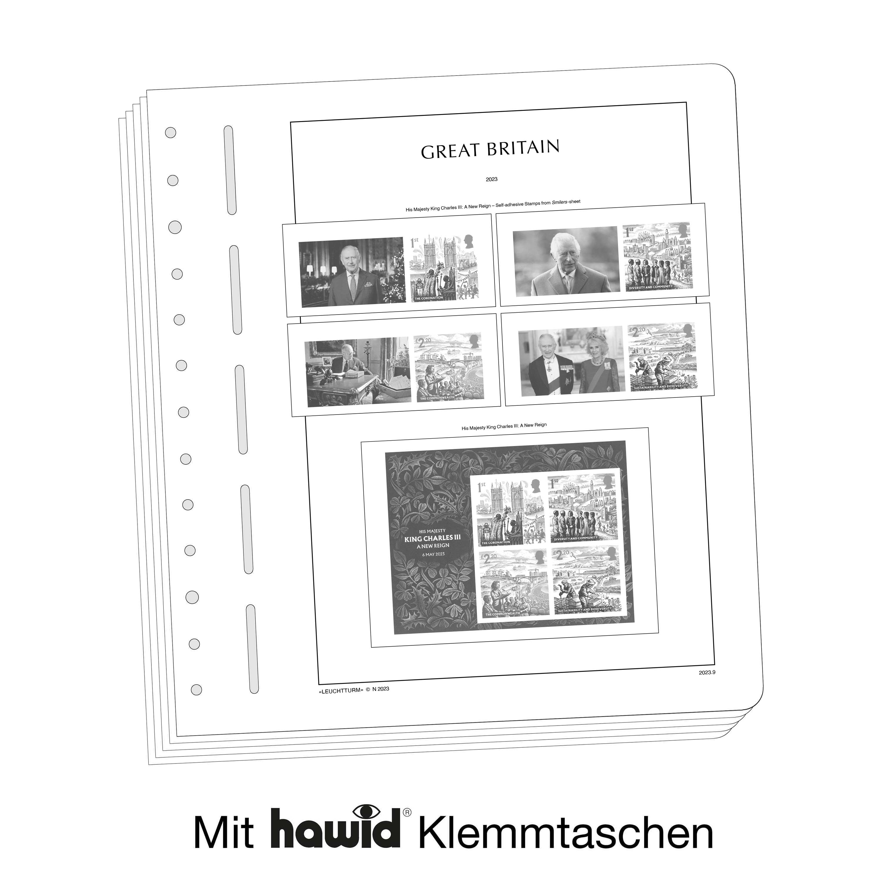 LIGHTHOUSE illustrated pages (size 270 x 297 mm/13-hole system) are printed on non-ageing wood and acid-free card (170 g/m 2 ) in high-resolution black and white offset print. Colour printing is consciously avoided. This allows you to immediately spot the missing stamps in your collection.