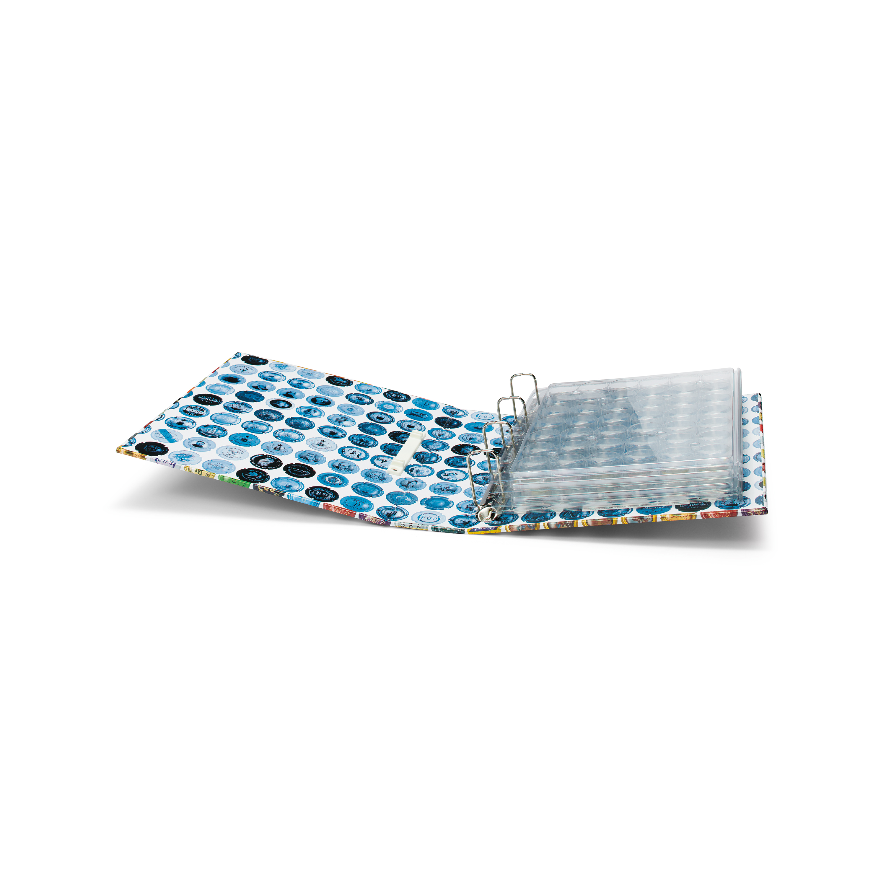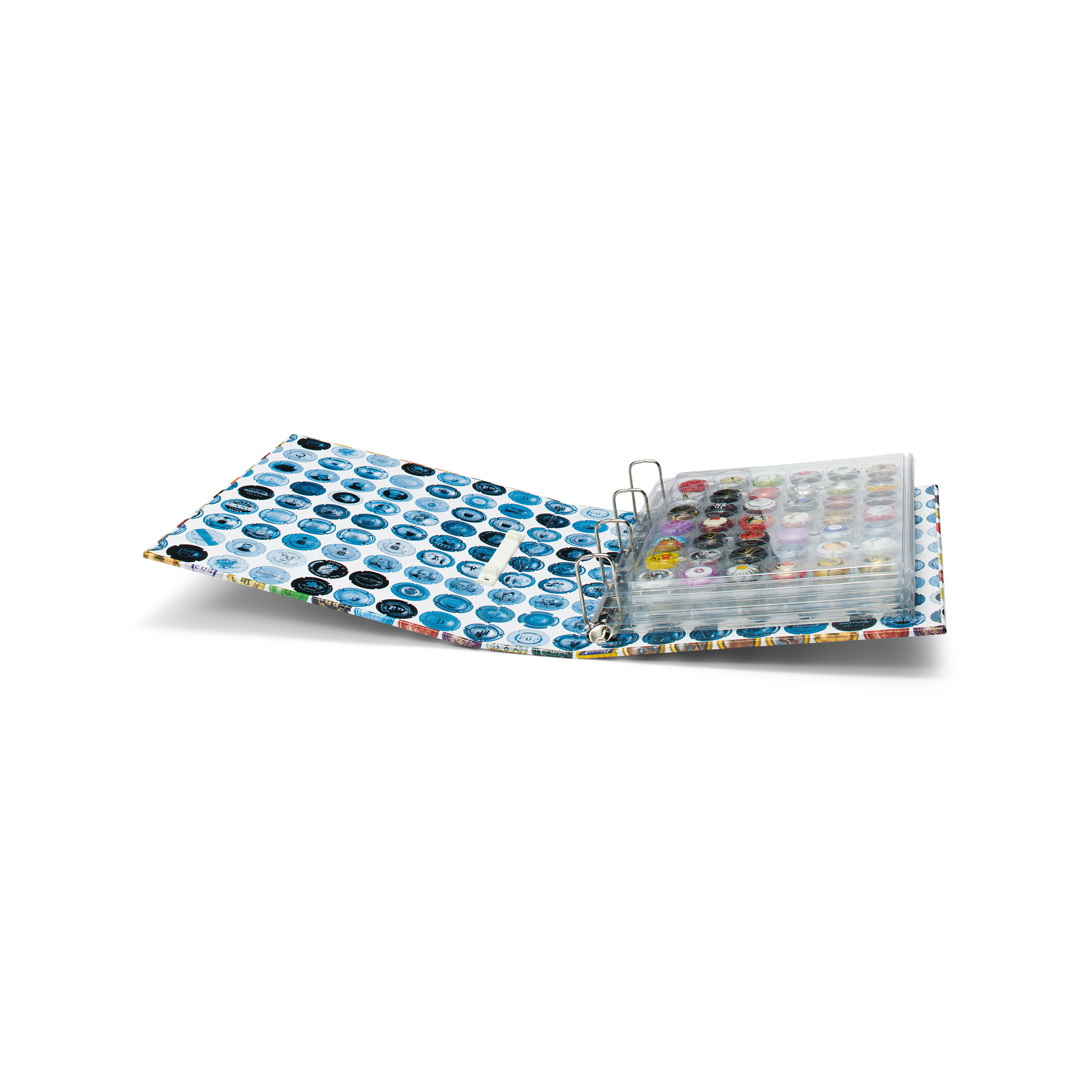 Ringbinder GRANDE with ENCAP clear sheets, incl. 4 sheets ENCAP for 168 champagne bottle caps. . The album can be extended with additional sheets. Capacity: up to 7 sheets ENCA for 294 champagne bottle caps.