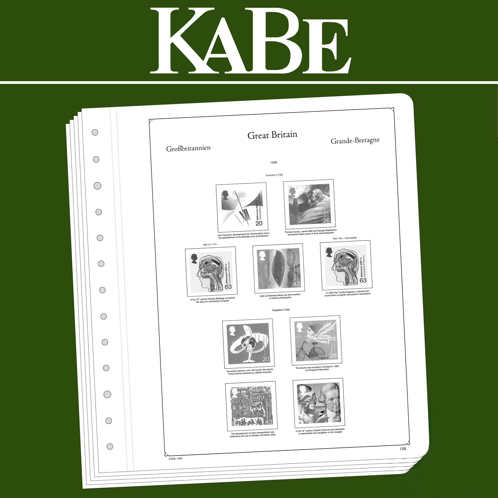 KABE illustrated pages (size 275 x 310 mm) are printed on non-ageing wood and acid-free card (175 g/m 2 ) in high-resolution black and white offset print. Colour printing is consciously avoided. This allows you to immediately spot the missing stamps in your collection.