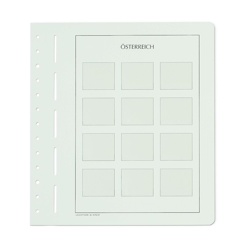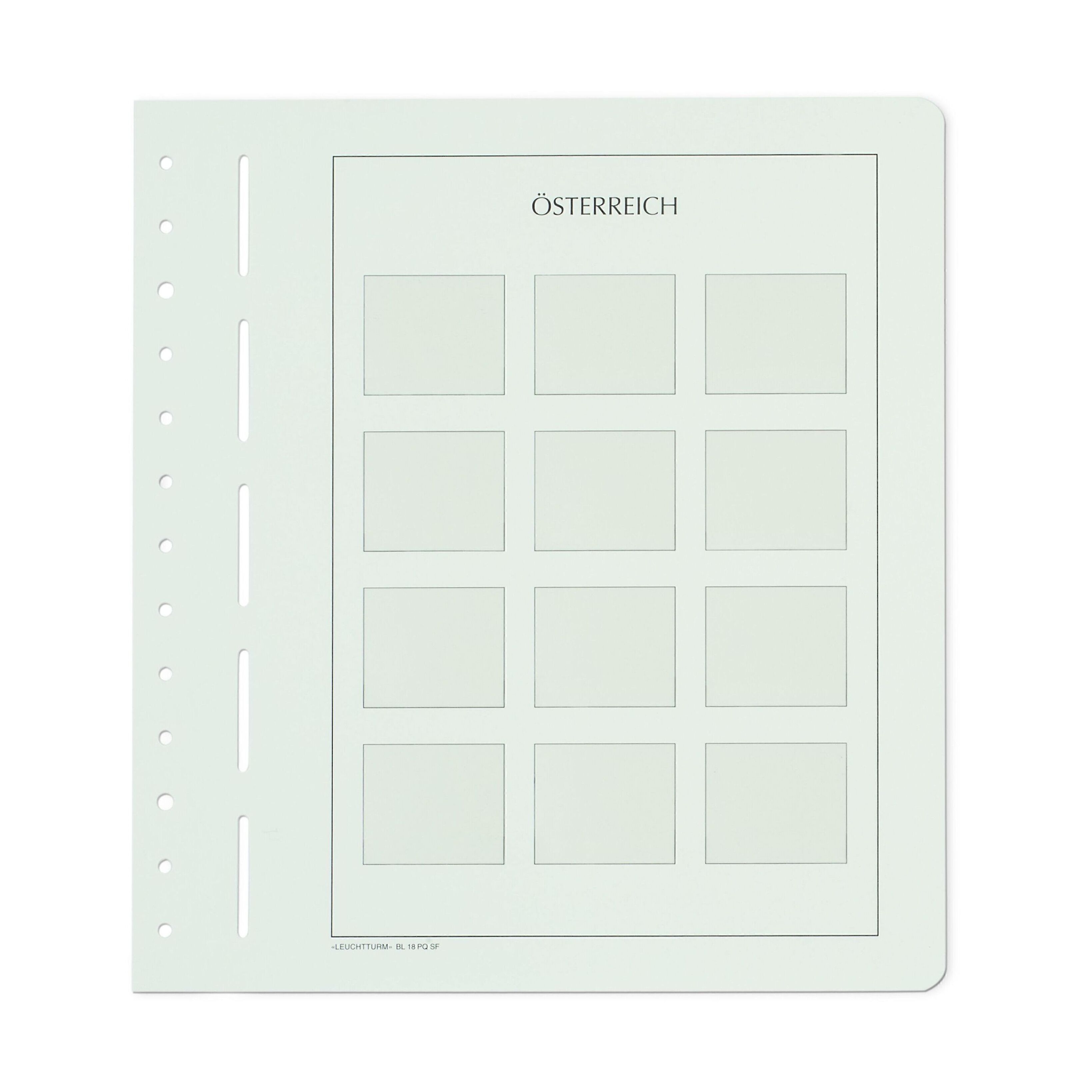 We offer special LIGHTHOUSE blank album pages (12 neutral fields with SF mounts per page, 100 % polystyrene) to store the Austrian personalised stamps which are available since November 2003. Compatible with LIGHTHOUSE ring, turn-bar and springback binders, 13 punched holes.