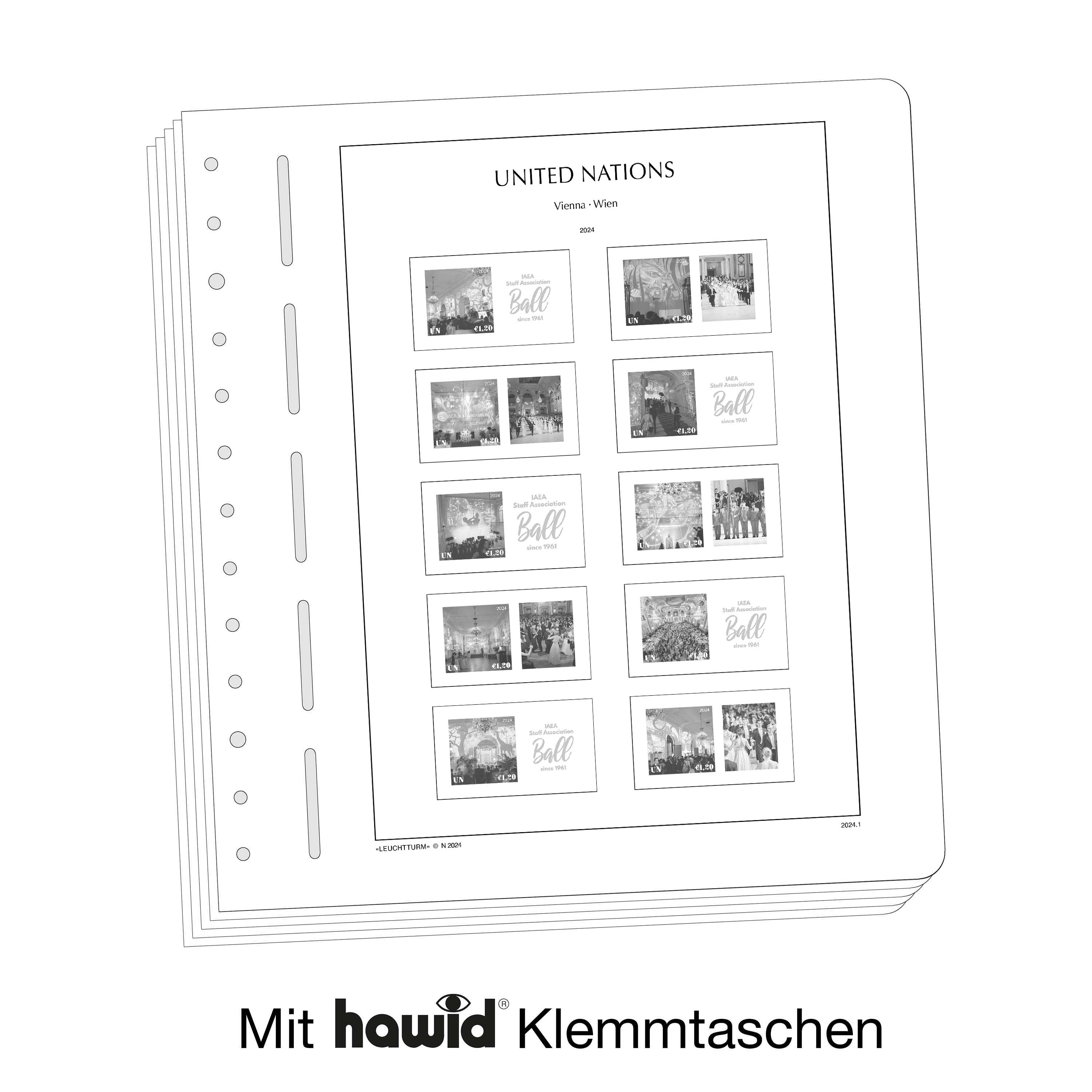 Lighthouse Illustrated album pages with stamp mounts UNO Vienna 2020-2024