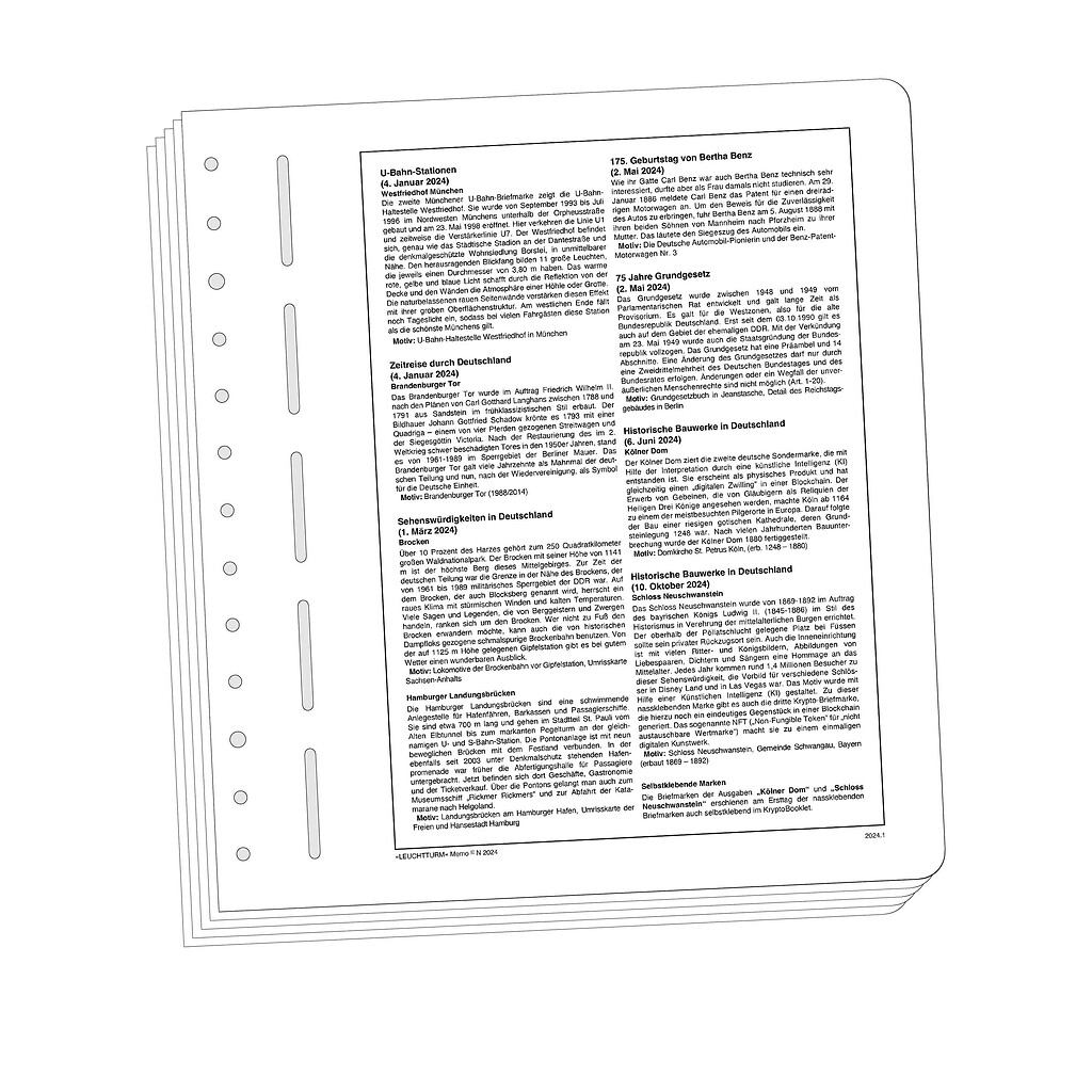 The MEMO sheets contain detailed information and facts about the market as well as expert advice and explanation about motifs, important historic background, futher philatelic specifics and other worth knowing details.