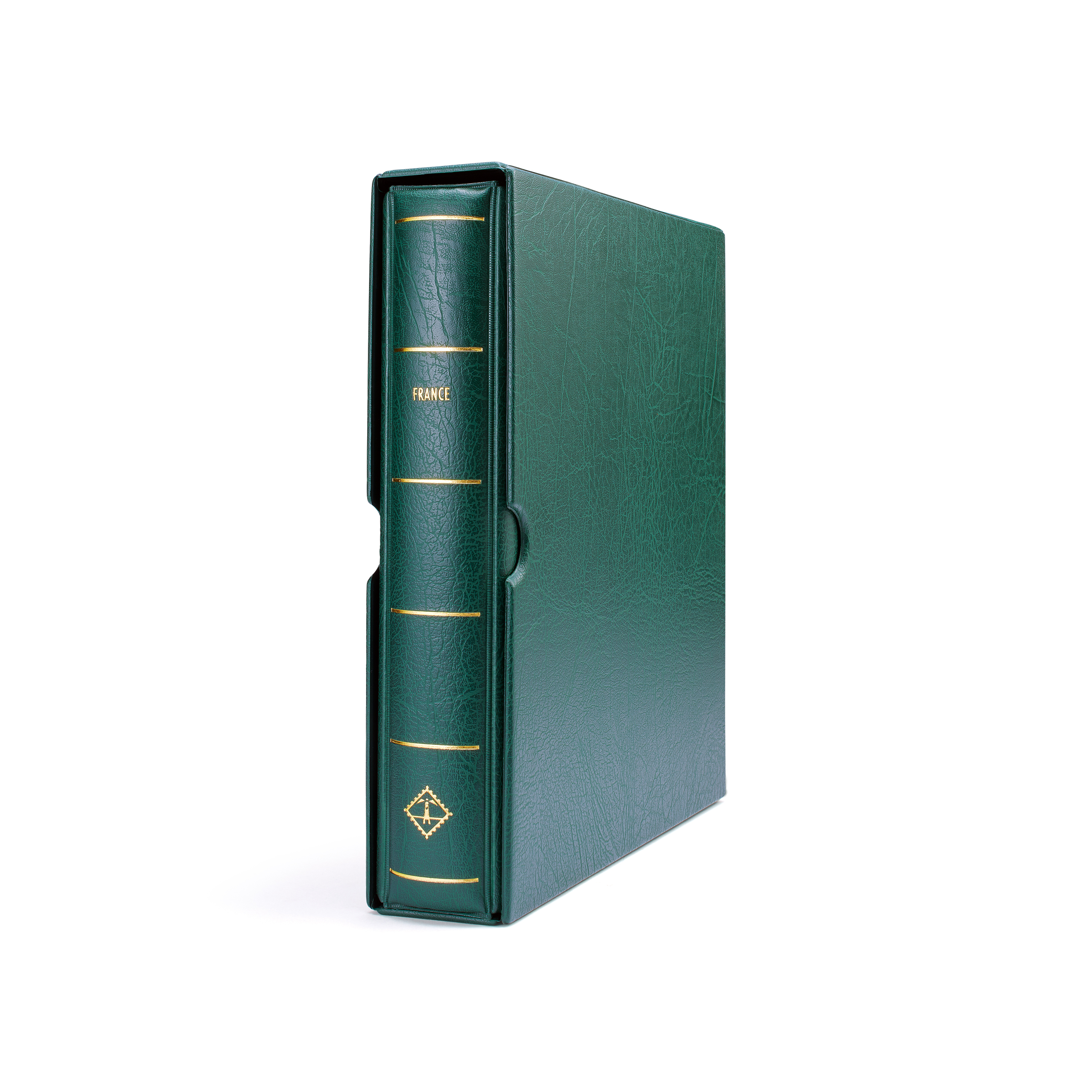 The traditional design consists of a green turn-bar binder PERFECT, textured fabric, embossed with country name on the back of the binder. Incl. slipcase.