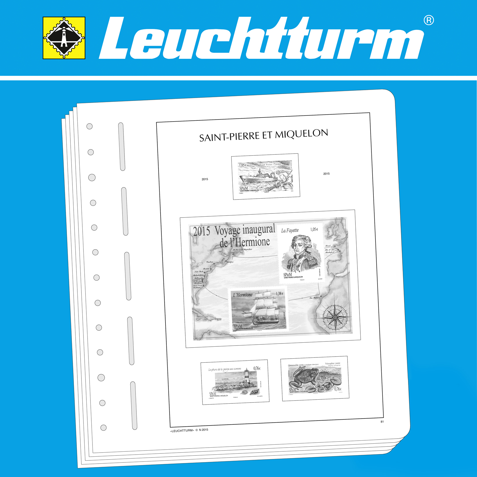 LIGHTHOUSE illustrated pages (size 270 x 297 mm/13-hole system) are printed on non-ageing wood and acid-free card (170 g/m 2 ) in high-resolution black and white offset print. Colour printing is consciously avoided. This allows you to immediately spot the missing stamps in your collection.