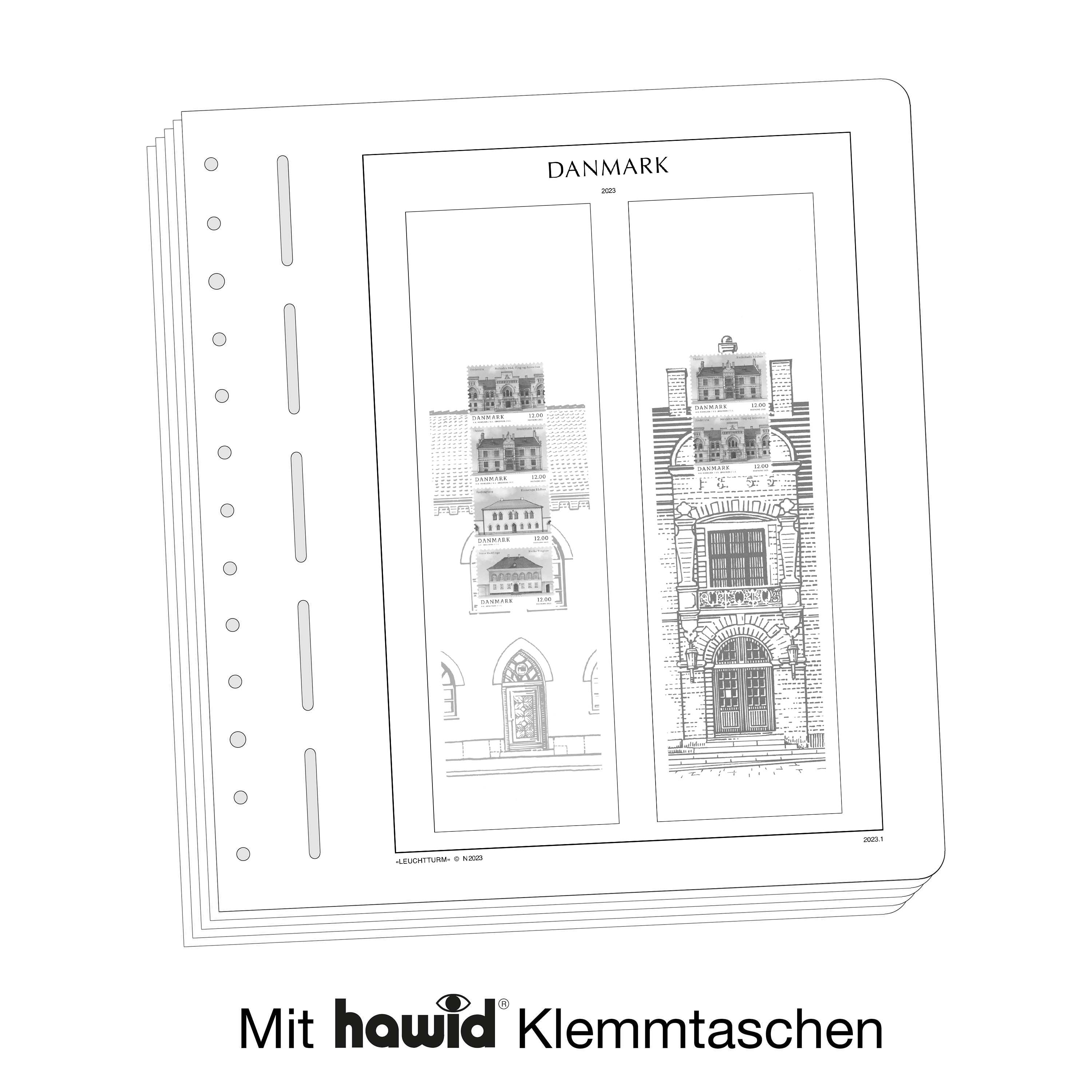 LIGHTHOUSE illustrated pages (size 270 x 297 mm/13-hole system) are printed on non-ageing wood and acid-free card (170 g/m 2 ) in high-resolution black and white offset print. Colour printing is consciously avoided. This allows you to immediately spot the missing stamps in your collection.