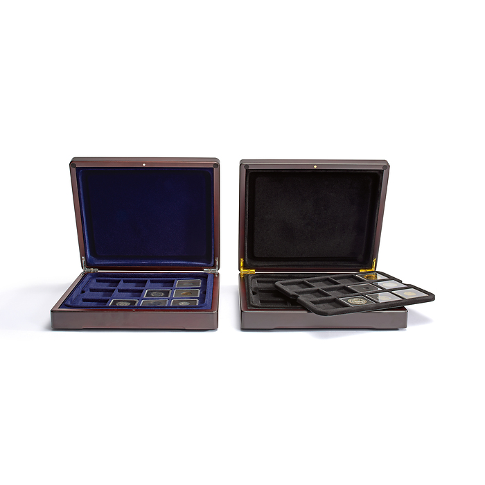 One removable tray holding 12 Quadrum coin capsules make the presentation case Mazzola a perfect solution for every coin series.