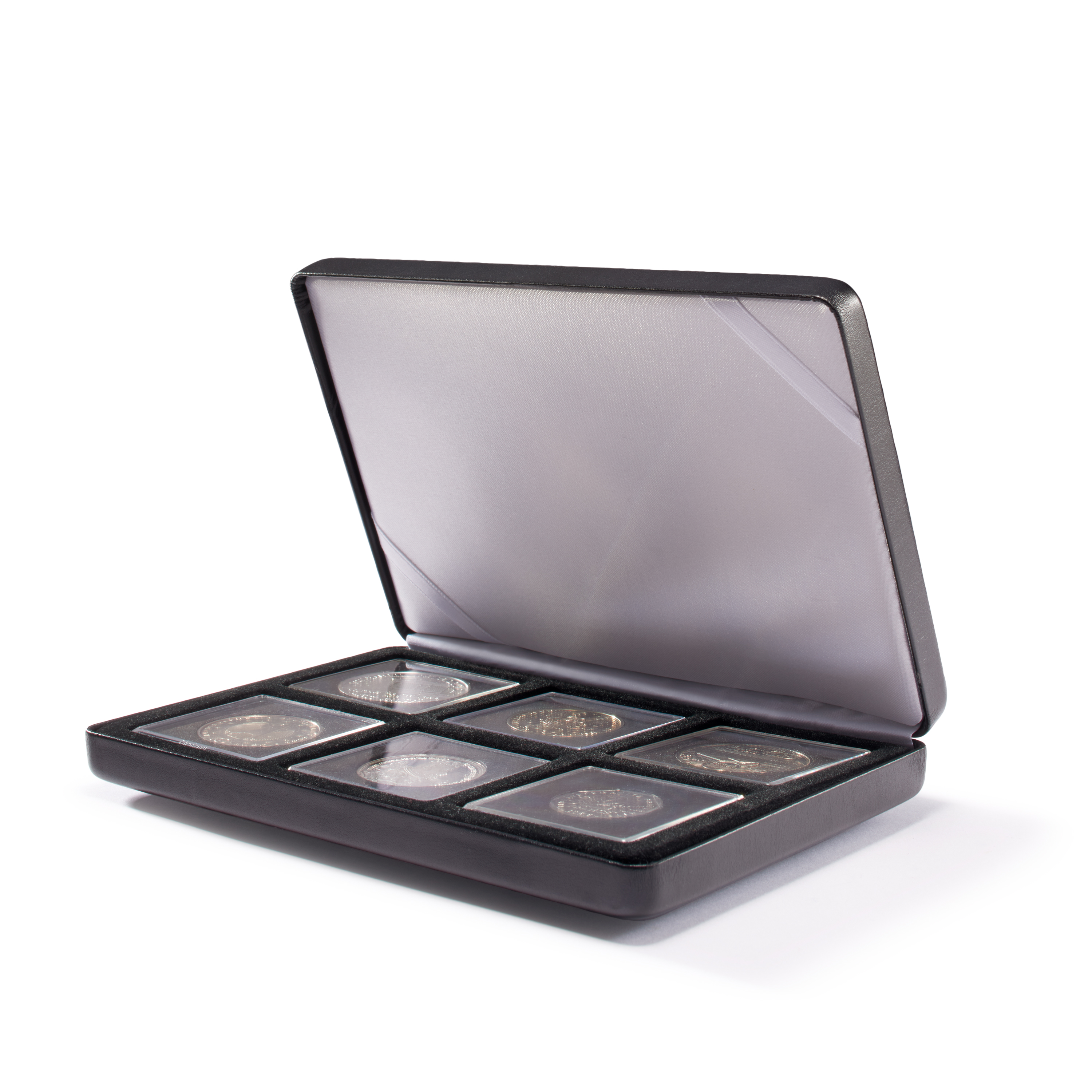 For the most elegant presentation of encapsulated coins may we recommend these high-quality coin boxes with silk-lined lid. A satin ribbon inside the lid can hold a certificate if desired. A sturdy metal frame protects the coin and thus makes it perfectly safe for postage as well as storage. Also suitable for QUADRUM square coin capsules. Suitable for LIGHTHOUSE QUADRUM capsules.