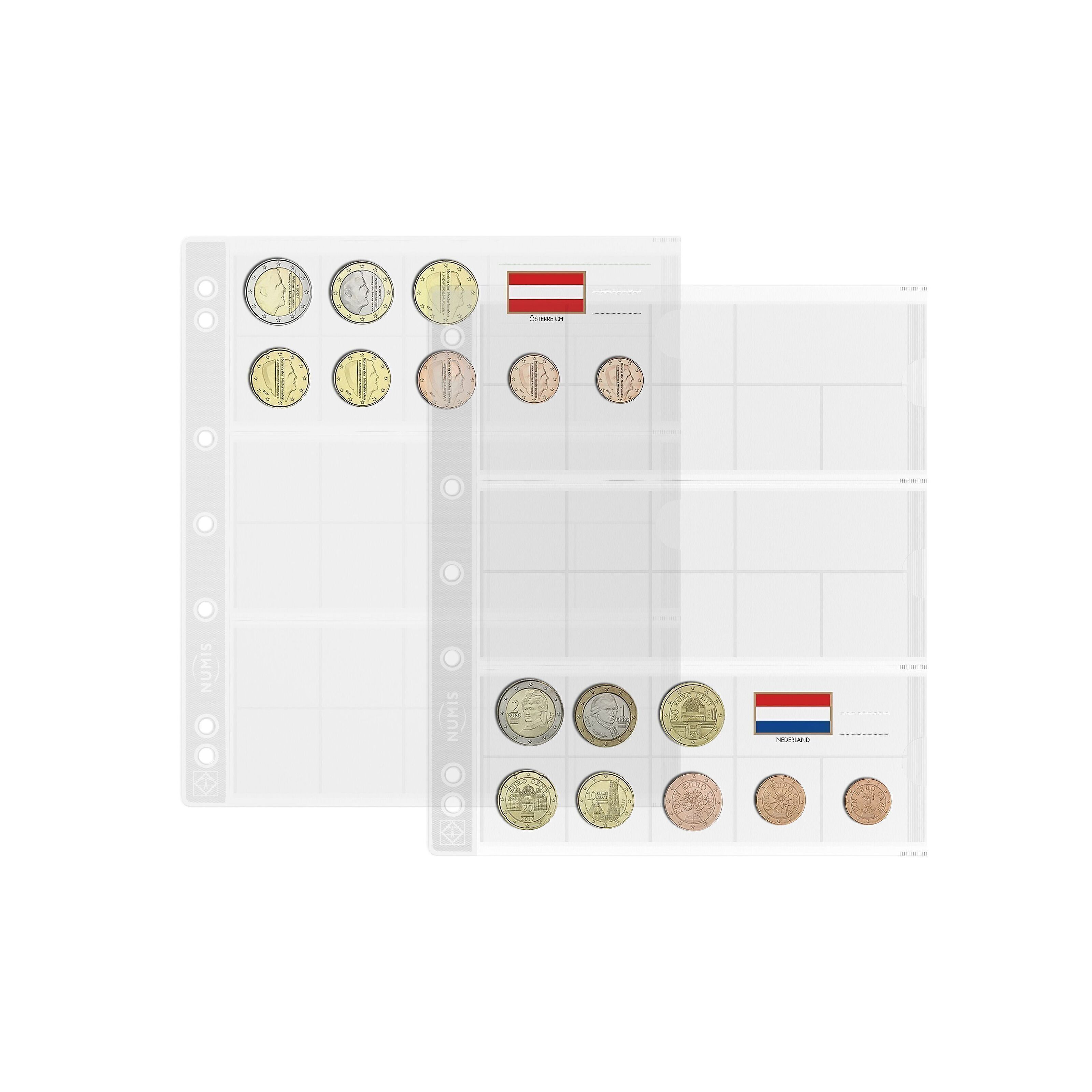 Numis coin sheets, for 3 complete Euro-coin Sets, Pack of 5