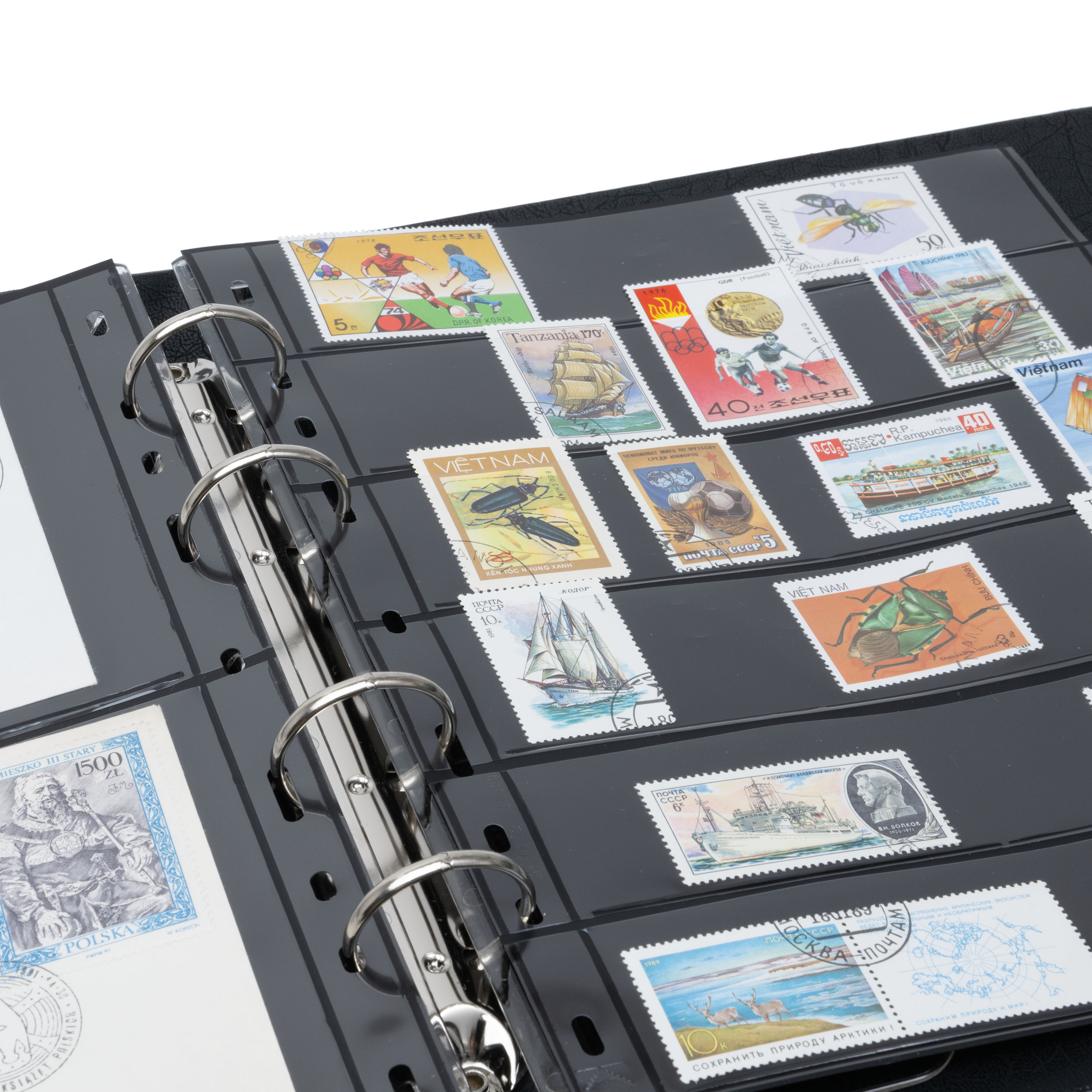 OPTIMA ring binder with sturdy 4-ring mechanism, textured leatherette binder and matching slipcase. Holds up to 50 sheets (depending on the strength of documents), including 2 page turners.