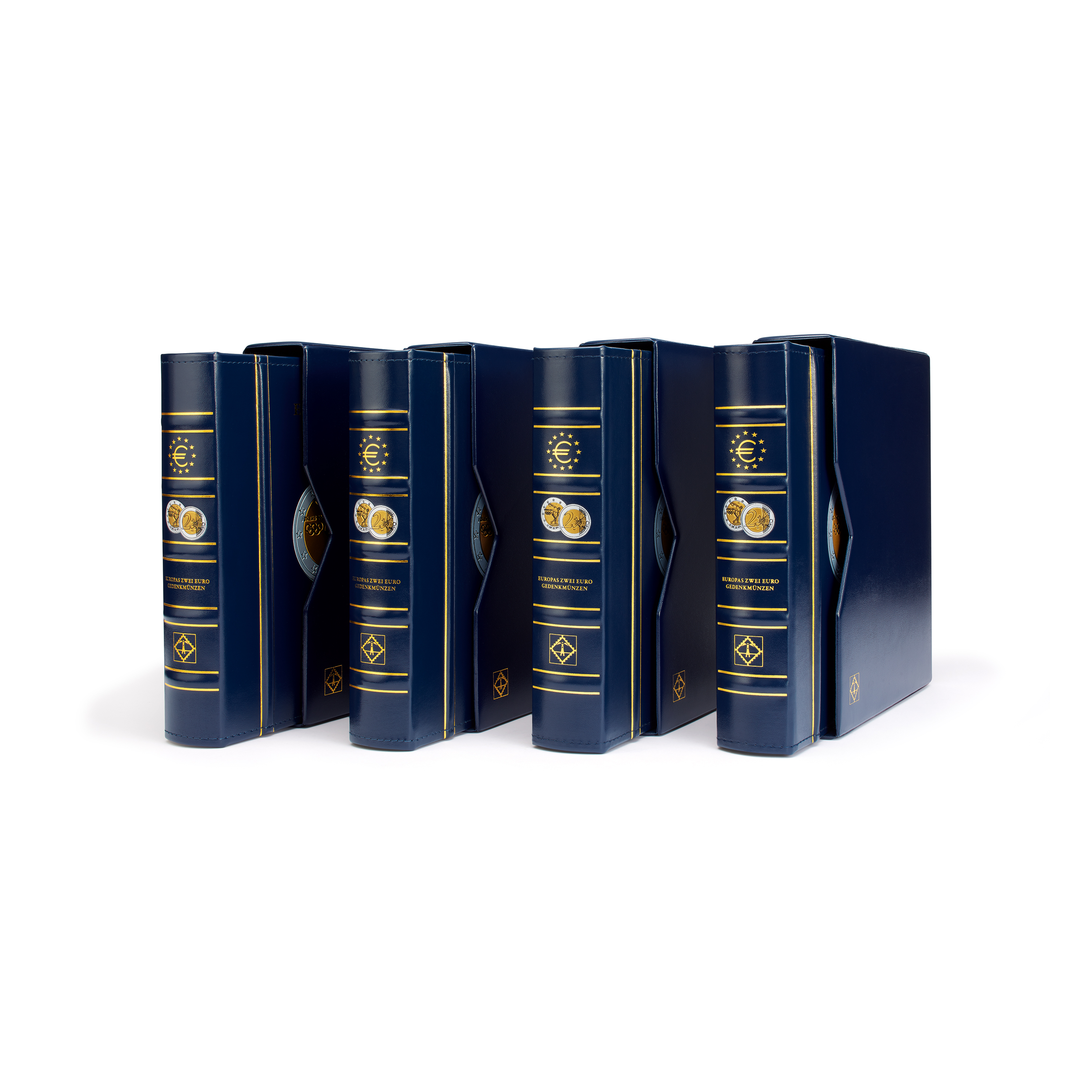 Contents: 12 OPTIMA coin sheets and 12 illustrated pages. Contains the following themes: complete* collection of 2-euro commemorative coins issued from 2004 up to and including 2013, as well as the German “Federal state series” of 2-euro commemorative coins which take into account all of the five mints up to and including 2013. Album includes matching slipcase.