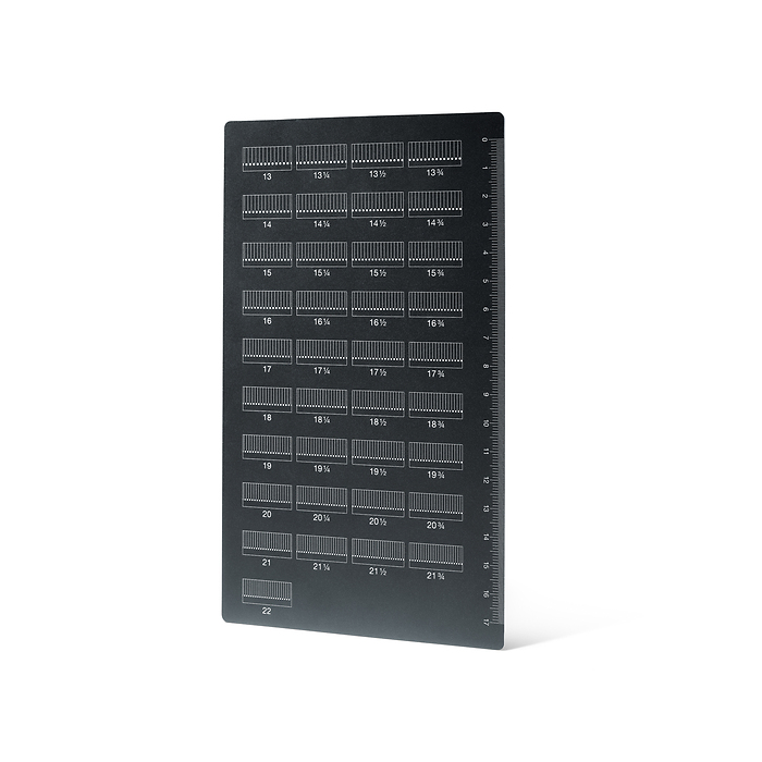 Transparent perforation gauge for defining the perforation of stamps. Simply move the stamp up the relevant scale until the tips of the individual perforations match the markers or holes exactly. Plastic-sealed.