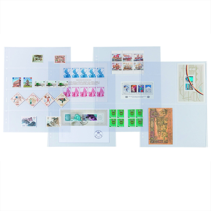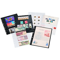 Clear welded strips completely cover the inserted collection items, thereby offering optimum protection. Document quality: 100% free from chemical softeners and acids. 8-cm perforation. The clear C sheets allow one-sided storage, the double-sided black S sheets provide double capacity.