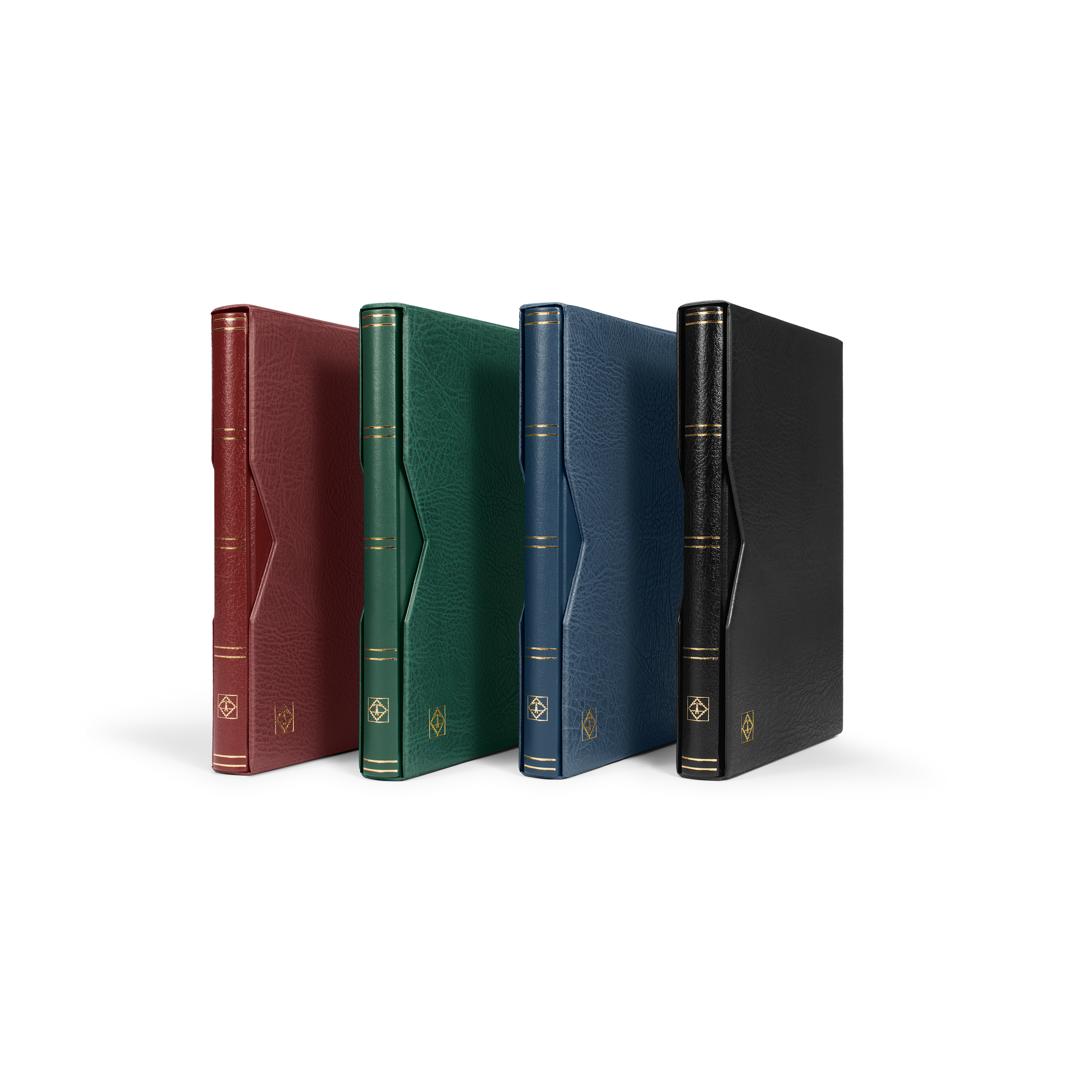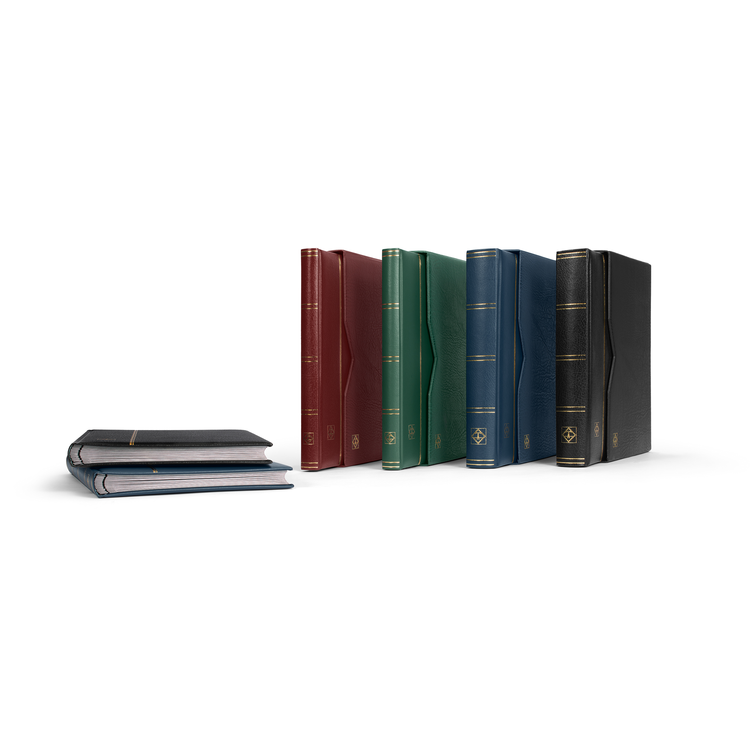 Premium padded stockbooks made of bonded leather, black pages