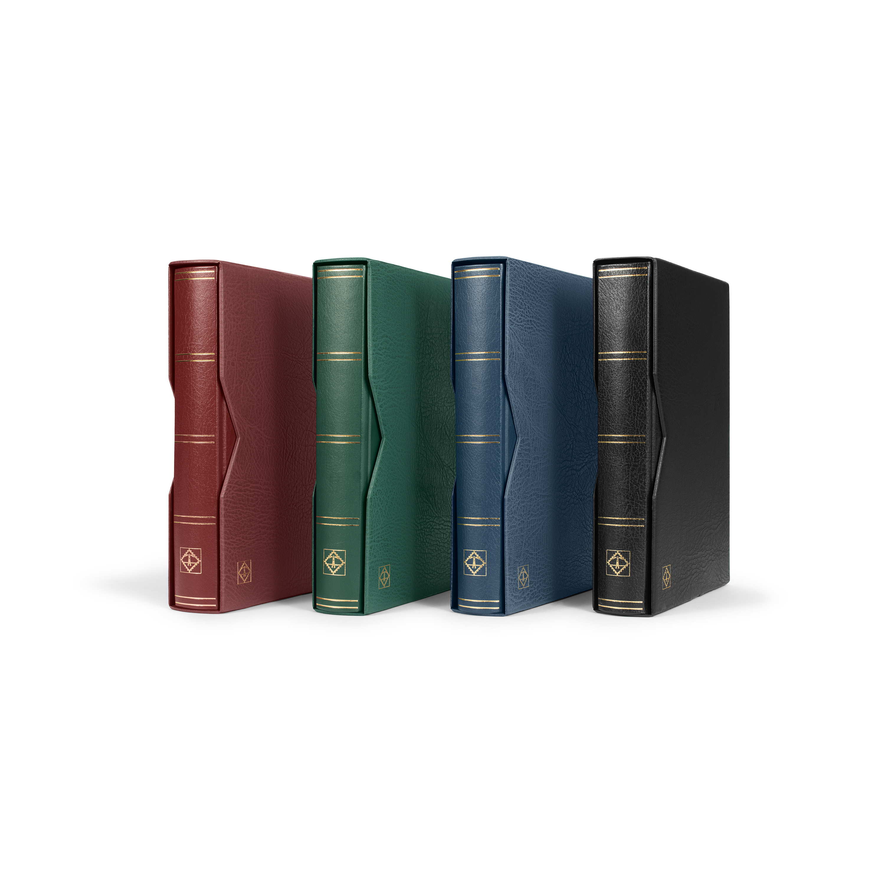 PREMIUM stockbook with 9 clear strips per page and special film free from chemical softeners. Doubled interleaves and double hinge binding, Regenerated leather (85% of natural leather). Available with 32 or 64 pages, with slipcase or without slipcase.
