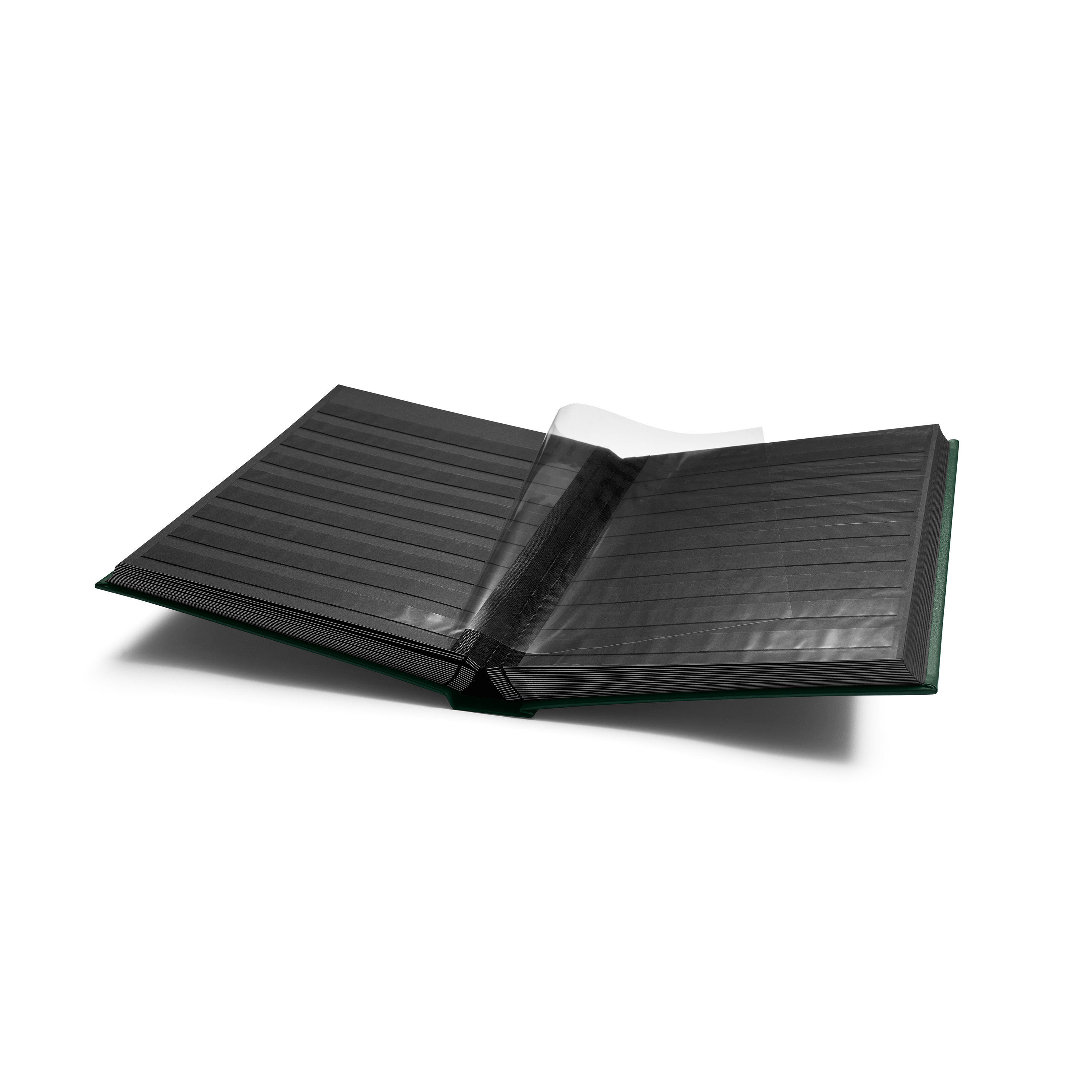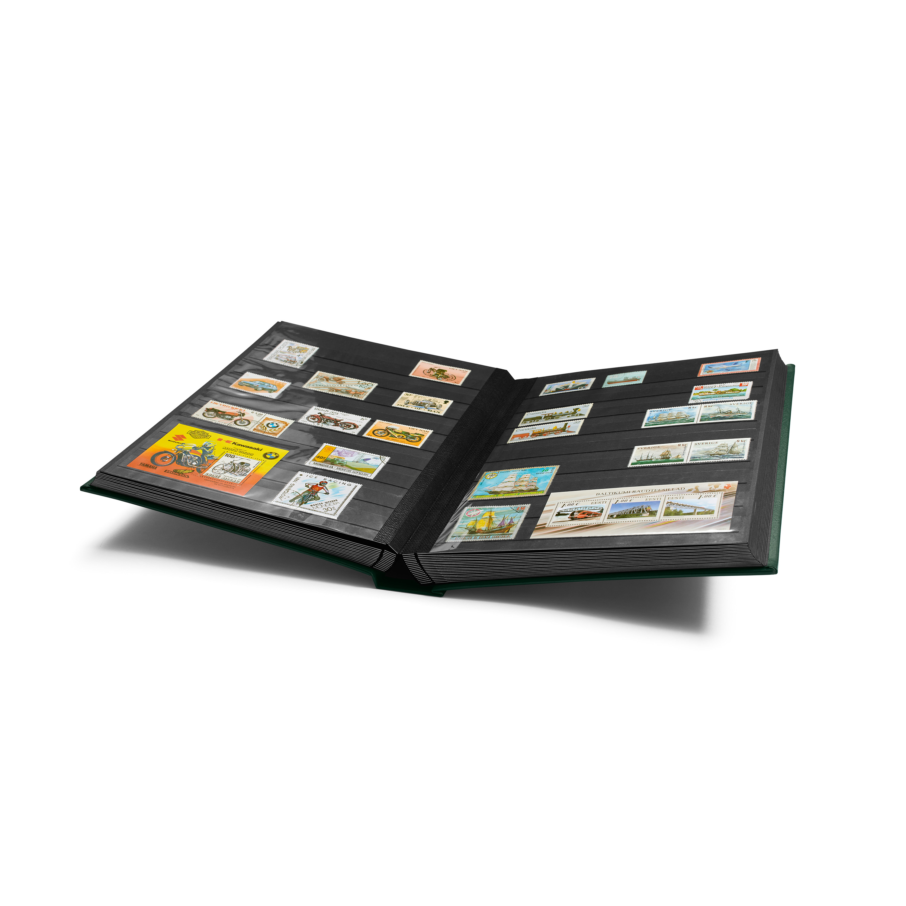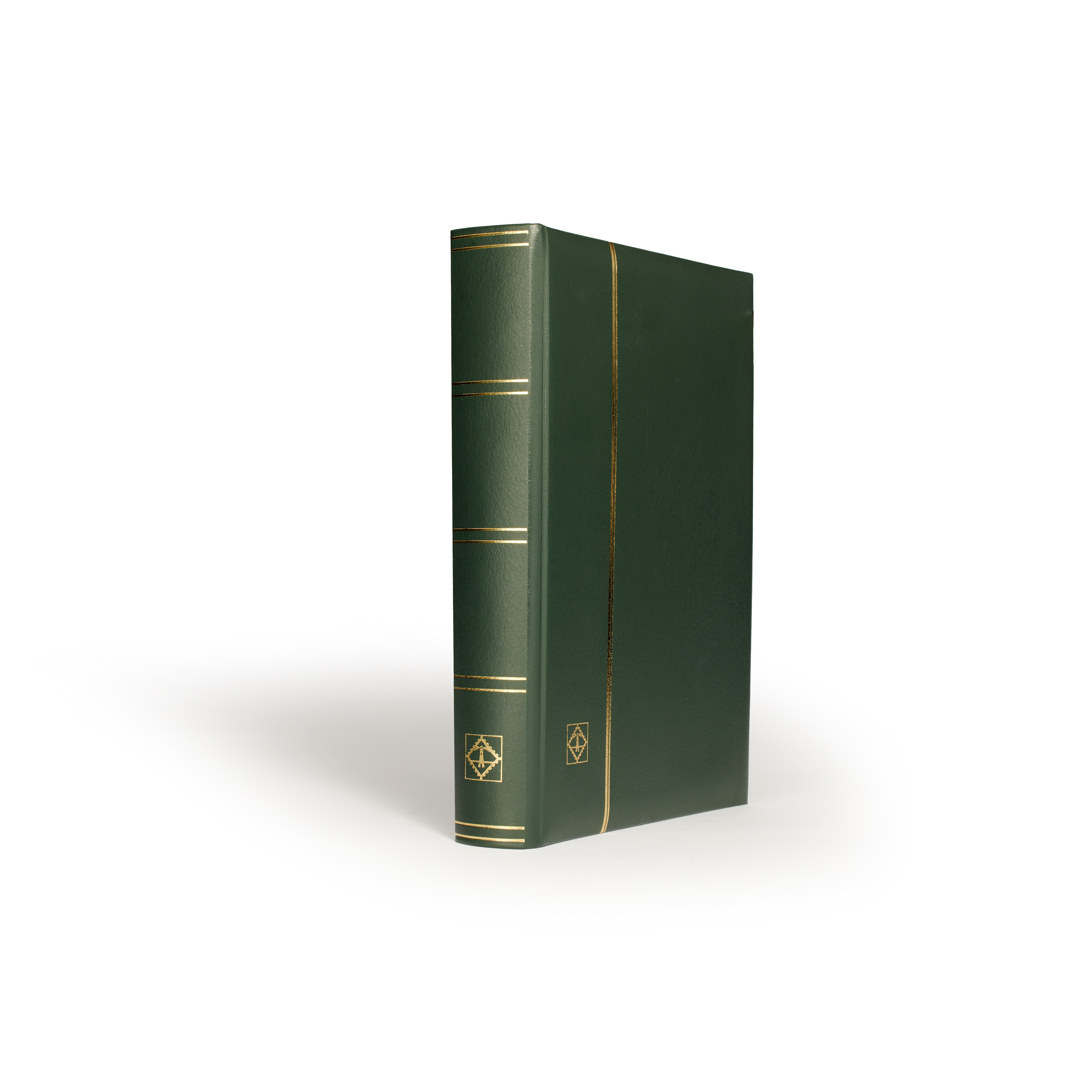 Premium stockbook, DIN A4, 64 black pages, padded cover made of LEFA, green