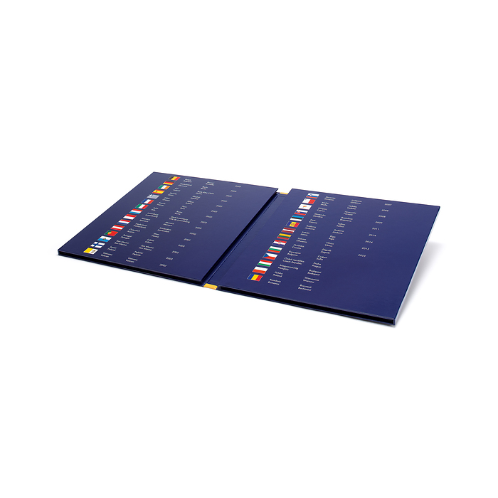 Our colourful Presso album is very popular due to its tailored perforation. The coin album makes a particularly elegant visual impression thanks to its laminated pages on both sides. Accommodation from 1 cent to €2 coins. The Presso coin album offers space for a total of 26 euro coin sets, this includes all euro countries. The small states of Andorra, Monaco, San Marino and the Vatican are excluded.