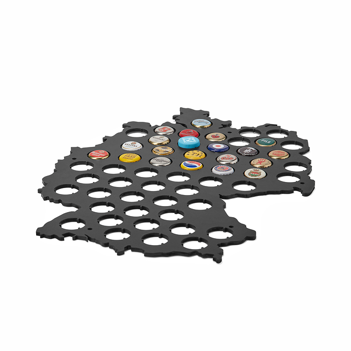 Present your crown cap collection in style with the Prost Kronkorken Karte Deutschland! This decorative wall hanger holds 54 standard crown corks and turns them into a real eye-catcher. Ideal for party rooms, regulars' tables or home bars, it offers a unique way to display your collected crown caps.