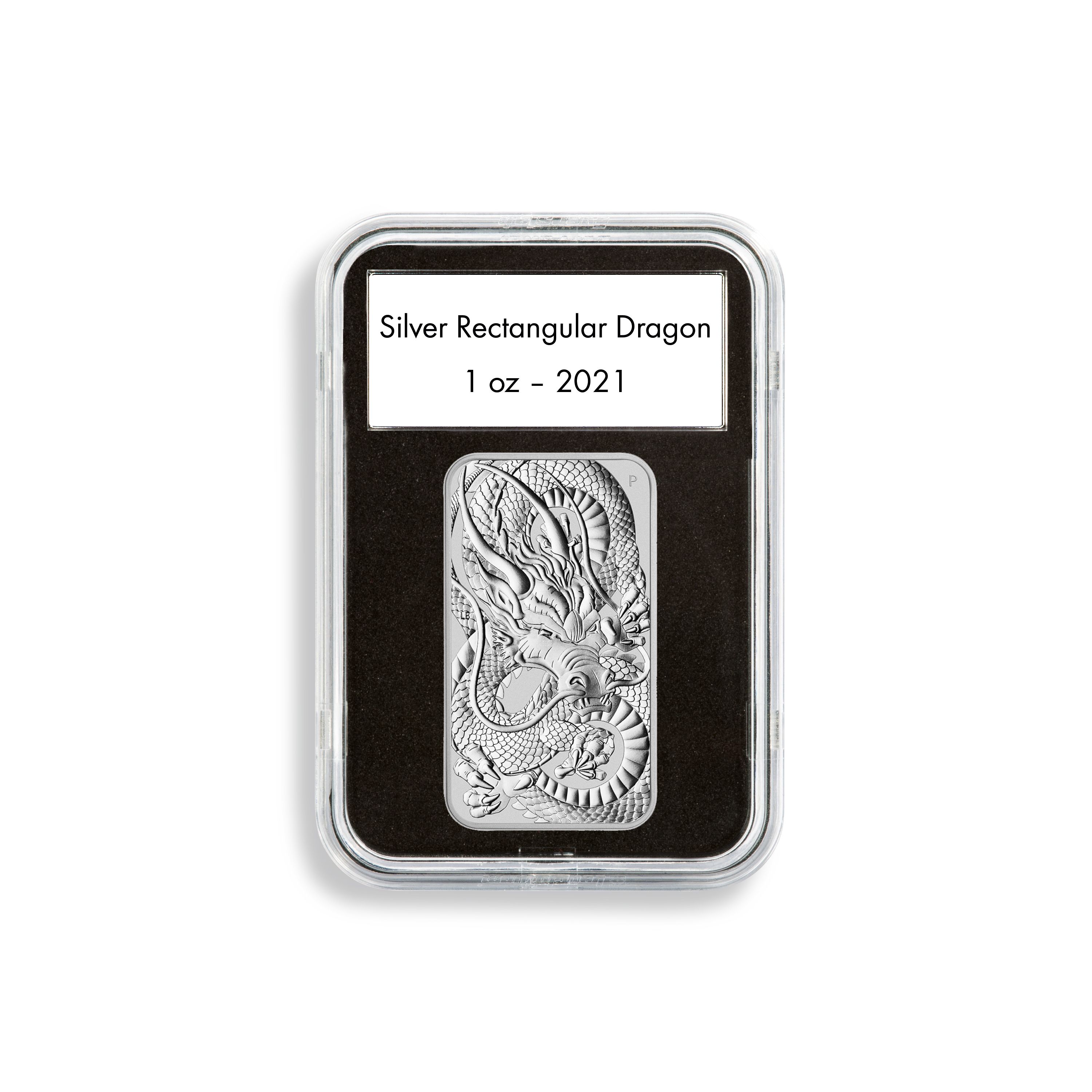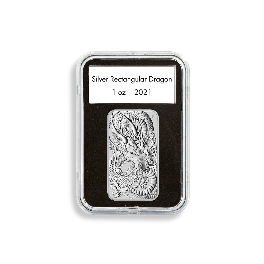 Quickslab coin capsules 47.6 x 27.6 mm for 1 oz. Silver Rectangular Dragon, 5 pcs pack