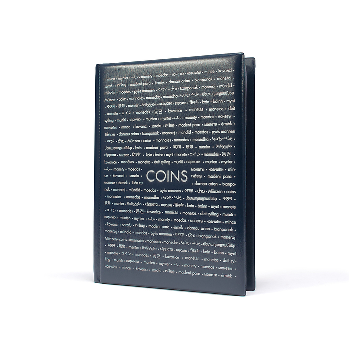 Coin wallet containing 8 sheets, each with space for 12 coins. With silver embossing „NUMIS“ on the lid and padded cover. Overall size:155 x 205 mm (6 x 8"). Perfect for transporting your collection and displaying it on trading days. Free of chemical softeners, durable rigid PVC sliding inserts.