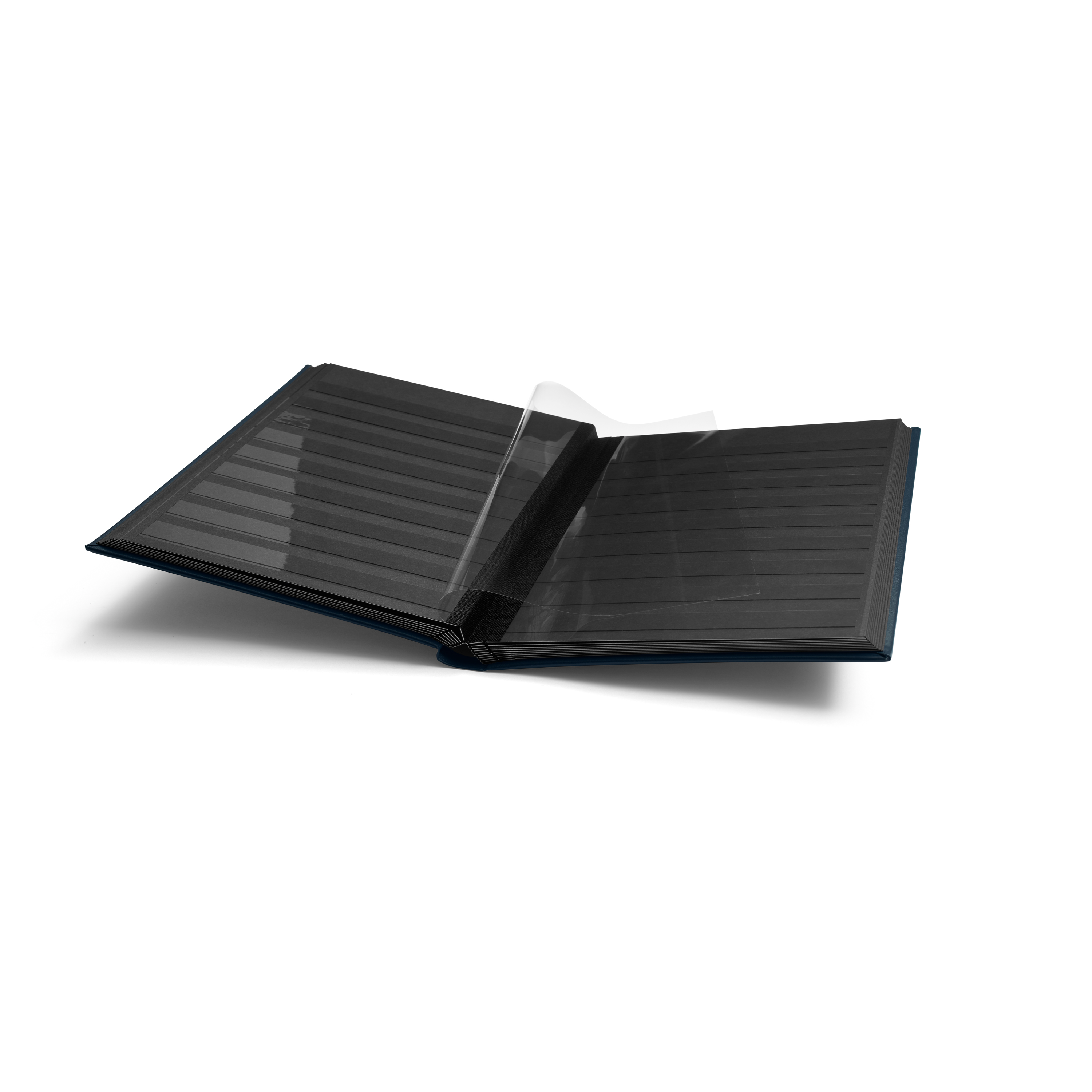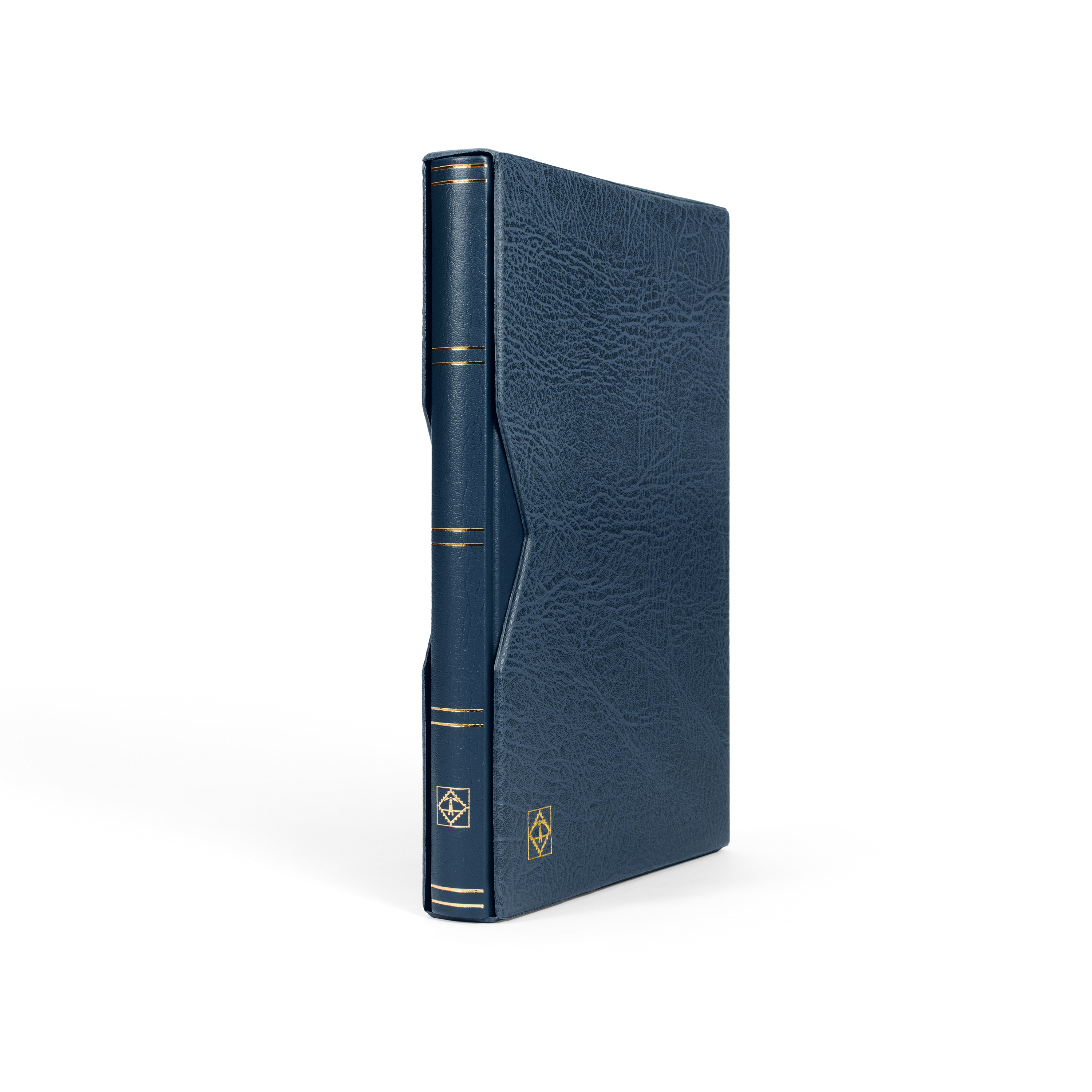 Stockbook Premium, A4, 32 black pages, padded leather* cover incl. slipcase, blue