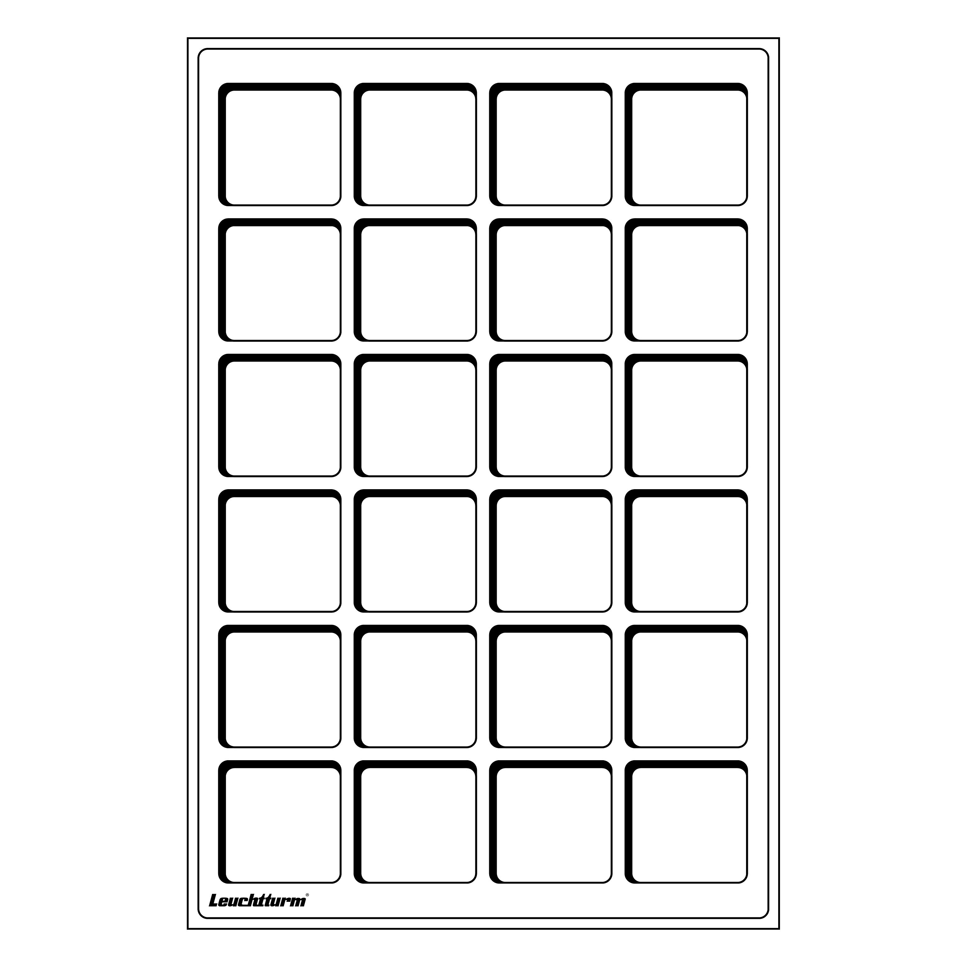 Tray with 24 rectangular compartments for coins up to 47 mm Ø. Tray lined with mock-velour surface. Suitable for casino chips and for coin cases CARGO L6 (empty) and CARGO L12 (empty) + presentation case L.
