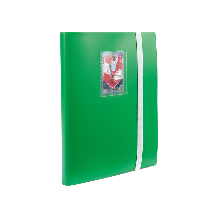 Make your favourite player the MVP of every match with the Toni Slim football trading card album. It offers space for up to 360 trading cards and therefore enough room to present and protect your valuable collection. The window pocket (66 x 90mm) seamlessly integrated into the cover, allows you to personalise the album with a trading card of your choice, suitable for a standard card with or without an inner sleeve. The flexible cover ensures easy handling as well as firm hold at the same time. The secure elastic band closure provides your trading cards with the needed protection and prevents possible slipping out, whether you are at home or on the move. With an outer format of 250 x 305 x 25 mm and 20 firmly bound in sheets, each with 9 compartments (inner format per compartment 70 x 95 mm), you can always keep track of your trading cards with Toni. The black interleaves featured with every sheet give a nice background and visual separation. A sticker set with country flags and years is included to personalise your collection. The album is perfect for all popular cards such as Bundesliga Match Attax, Champions League Match Attax, Match Attax Extra, Topps EURO 2024 Match Attax, Panini Top Class, Panini World Class or Panini Prizm Premier League.