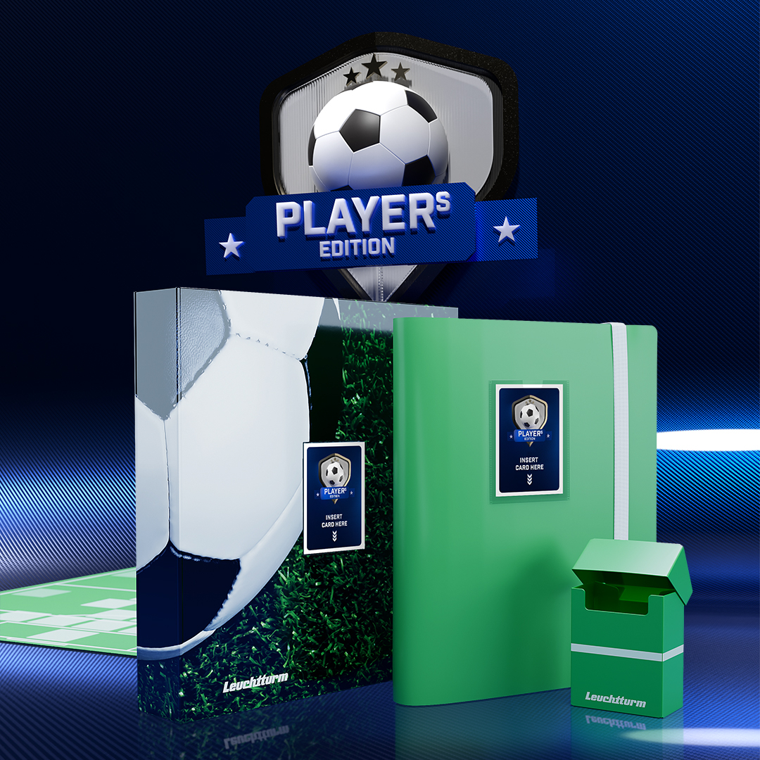 For players and collectors of football trading cards alike. Collector's albums with a window for your favourite card, a deck box with separator cards, sleeves and sheets to protect the coveted cards and two playing mats.