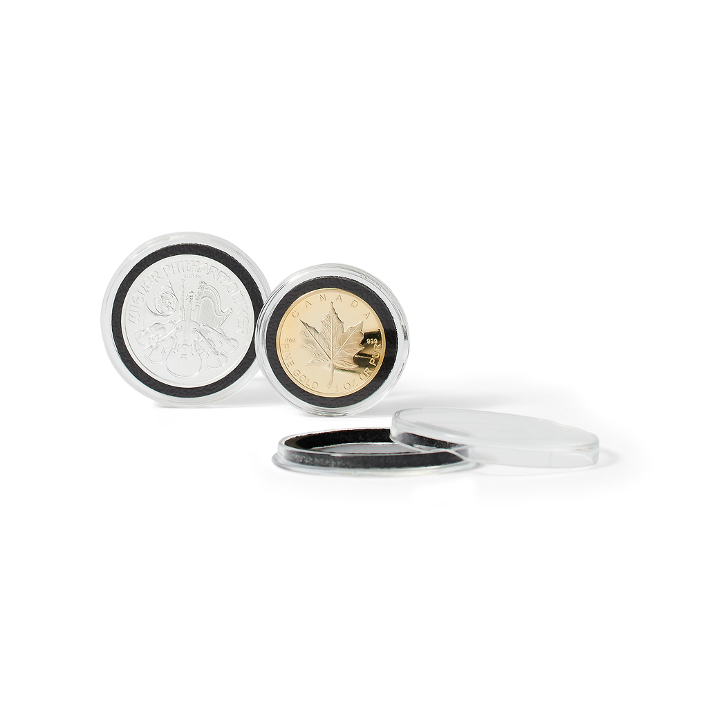 The foam ring inside the capsules with a thickness of 3 mm is based on the patented Intercept technology, which is proven for more than 30 years. The copper particles in the material bind corrosive gases permanently and as a result neutralise harmful atmospheric substances inside the capsule. This protects the coins from tarnishing. Guaranteed protection up to 15 years*! The effect was verified by the reliable norms DIN, EN, ISO and ASTM amongst others. Available for all coins with a diameter from 16 mm and 22 to 41 mm (in millimeter steps).