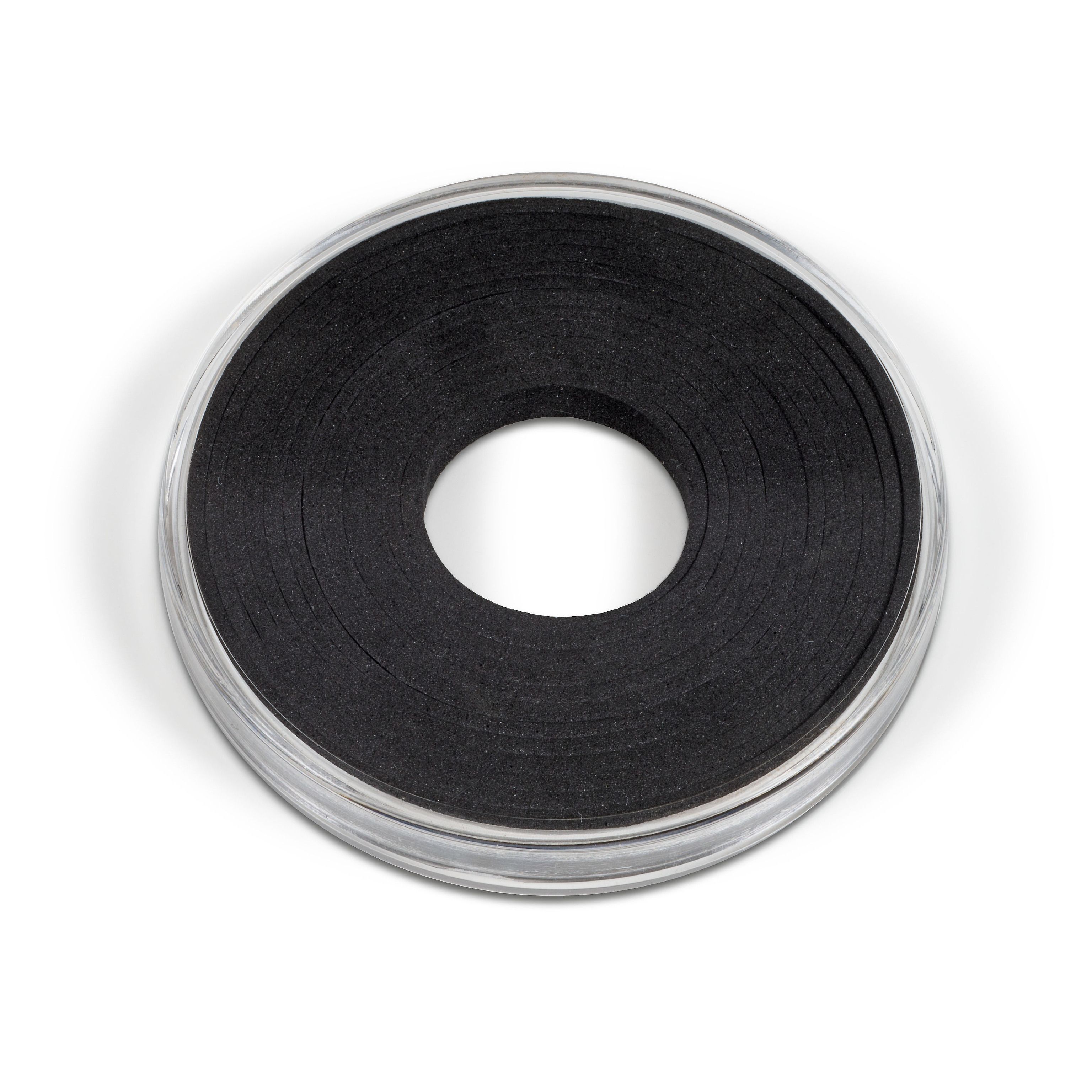 XL coin capsules are ideal for storing particularly large coins of up to 76 mm in diameter – for example, 5 oz “America the Beautiful” silver coins. They contain 12 individually removable spacing rings made from black foam (free from acid and chemical softeners), also allowing smaller coins of up to 29 mm in diameter to fit perfectly in the capsule. The inside height of the capsule is 6.82 mm, while the exterior height is 12 mm. Exterior diameter: 82.4 mm.